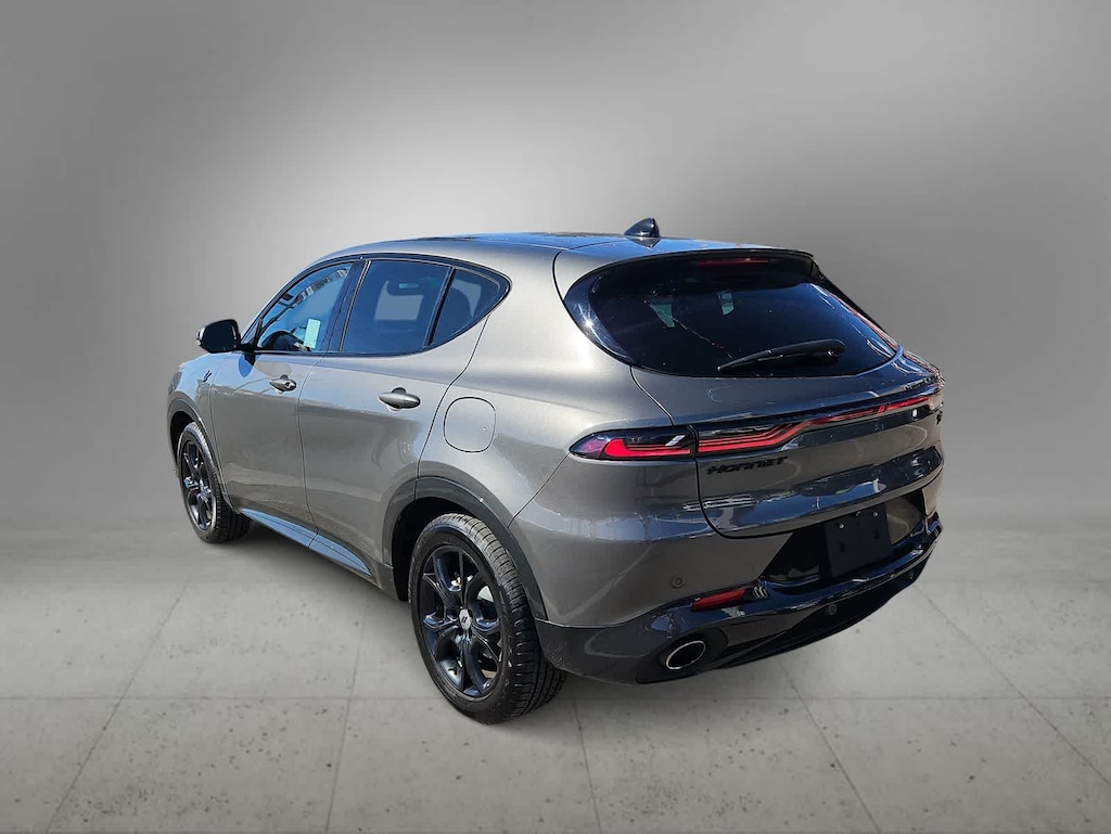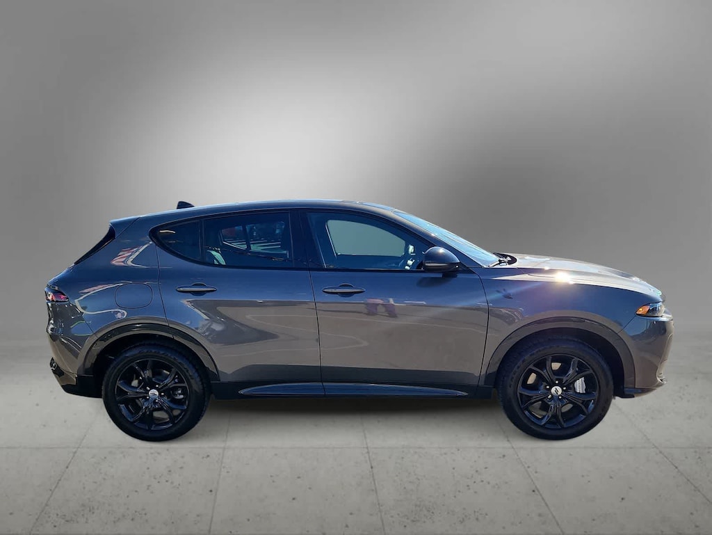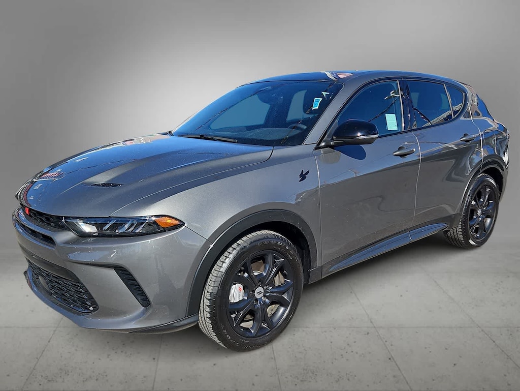 Our One Owner, Accident Free 2024 Dodge Hornet R/T Plus AWD with the Blacktop Pack blends bold style and performance in Gray Cray! Powered by a TurboCharged 1.3 Liter 4 Cylinder and an Electric Motor supplying a combined 288hp to a paddle-shifted 6 Speed Aisin Automatic transmission. Engage PowerShot for maximum acceleration and hold onto the corners with Brembo brakes and a KONI selective damping suspension. This All Wheel Drive SUV also features plug-in capability for nearly 32 miles of EV travel, then switches to gas-hybrid mode to keep on going. Our Blacktop Pack adds 18-inch dark-finish wheels, gloss-black window moldings, black mirror caps, and matching badges to our Hornets dynamic GT grille, LED lighting, a power sunroof, and a hands-free liftgate.