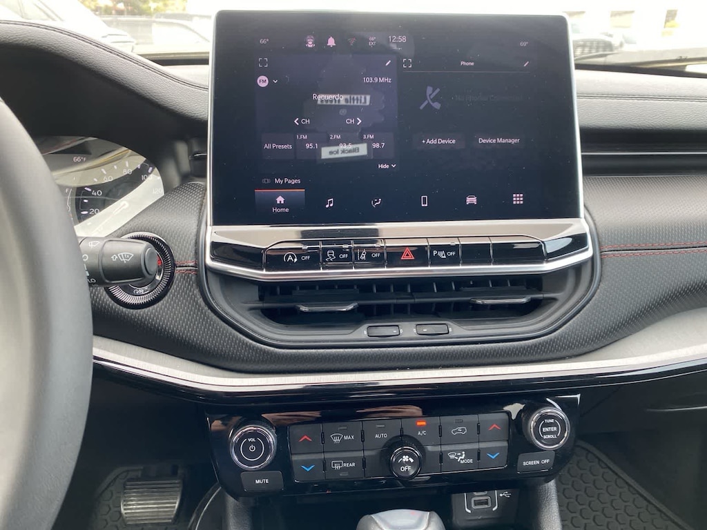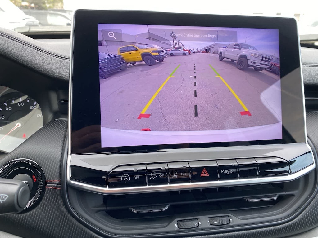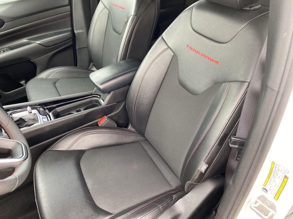 Our Trailhawk cabin is for owners who like to take charge of their days. The comfortable interior has leather/premium-cloth front seats, red accent stitching, a premium-wrapped steering wheel, dual-zone automatic climate control, pushbutton ignition, keyless access, and versatile cargo space for your gear. Uconnectî technology is standard for infotainment, offering easy connections with a 10.1-inch touchscreen, a 7-inch driver display, Apple CarPlayî/Android Autoî, WiFi compatibility, Bluetoothî, voice activation, and six-speaker audio.