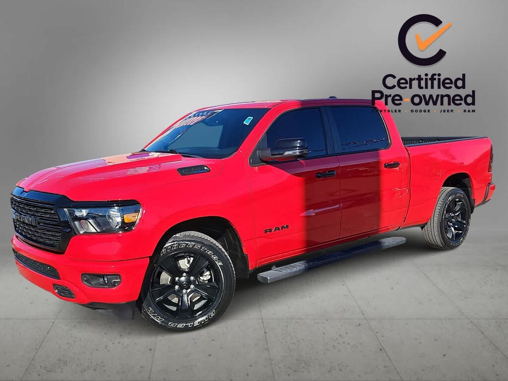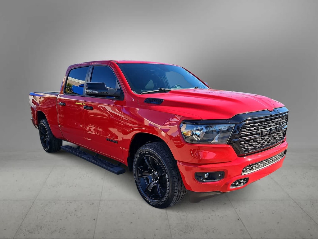 Our bold One Owner 2024 RAM 1500 Big Horn Crew Cab 4X2 is here for people who work hard and want to do more in Flame Red! Powered by a 5.7 Liter eTorque HEMI V8 providing 395hp to an 8 Speed Automatic transmission for smart capability. This Rear Wheel Drive truck also scores nearly 23mpg on the highway with responsive handling and a rugged design. Our RAM stands strong and looks good with our Level B Pack, which adds fog lamps, heated power-folding mirrors, and a Class IV receiver hitch to bright bumpers, chrome grille accents, and alloy wheels.