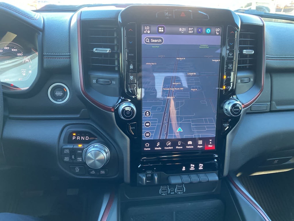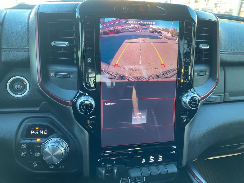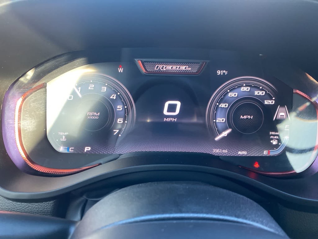 Our Rebel cabin is ready for rough terrain thanks to its heated cloth front seats, eight-way power for the driver, a heated-wrapped steering wheel, dual-zone automatic climate control, a power rear window, remote start, and our Level 1 Pack for power-adjustable pedals and wireless charging. Off-Road Info Pages enhance the infotainment system, which bundles a 12-inch driver display, 12-inch touchscreen, full-color navigation, WiFi compatibility, Android Auto®/Apple CarPlay®, Bluetooth®, voice control, and nine-speaker audio.