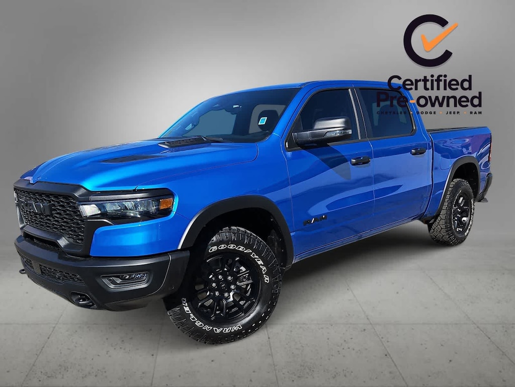 Dynamic and defiant, our One Owner, Accident Free 2025 RAM 1500 Rebel Crew Cab 4X4 with the Level 1 Pack in Hydro Blue Pearl dares you to find your limits! Motivated by a Twin-TurboCharged 3.0 Liter Hurricane 6 Cylinder delivering 420hp to an 8 Speed Automatic transmission engineered for off-road domination. A raised ride height, performance shocks, and a shift-on-demand transfer case can take this Four Wheel Drive truck further down the trail, achieving nearly 24mpg on the highway. Our fierce RAM features LED lighting, fog lamps, a sport performance hood, bold graphics, alloy wheels, off-road fender flares, robust skid plates, and our Level 1 Pack for a power-release tailgate and multifunction mirrors.