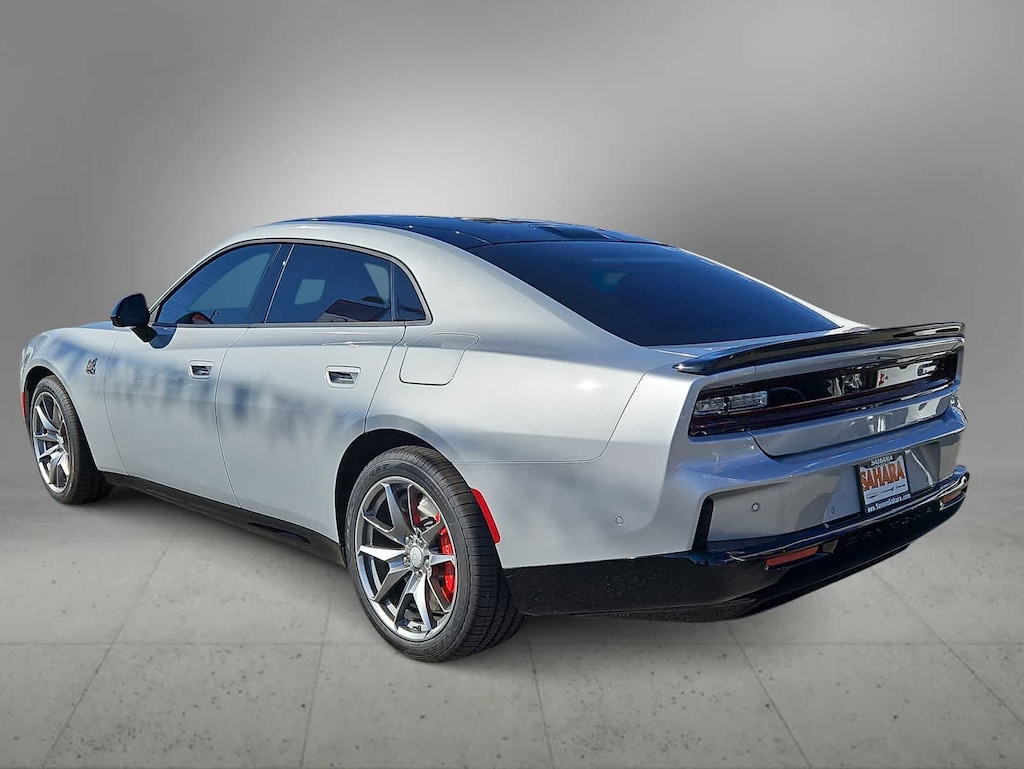 Light up our 2026 Dodge Charger Daytona Scat Pack Sedan in Triple Nickel, and let its performance do the talking! Motivated by Dual Electric Stage 2 Motors providing a combined 670hp to a 1 Speed Automatic transmission for racing to 60mph in just 3.3 seconds with PowerShot. This All Wheel Drive sedan rocks Drag/Drift/Donut modes for extreme thrills; attacks the corners with a high-performance suspension and Brembo brakes; and goes the distance with a 100.5kWh battery for nearly 241 miles of EV action. Our Charger Daytona radiates Dodge DNA with LED lighting, a performance hood, a gloss-black roof, a Scat Pack Bee graphic, and alloy wheels.