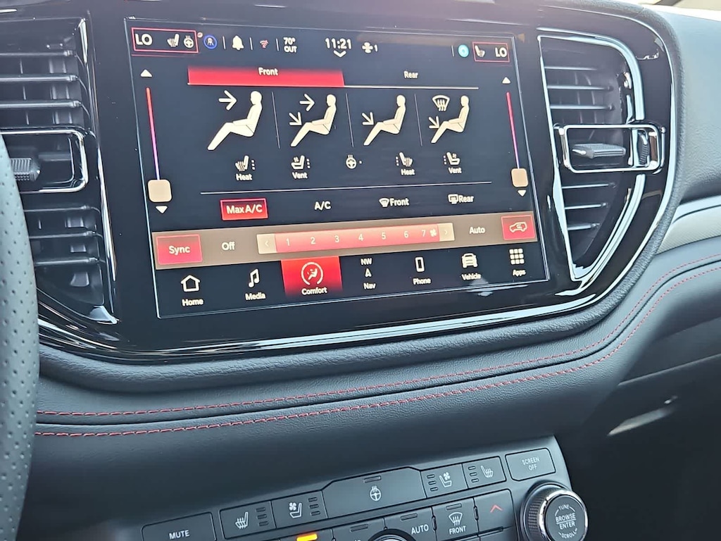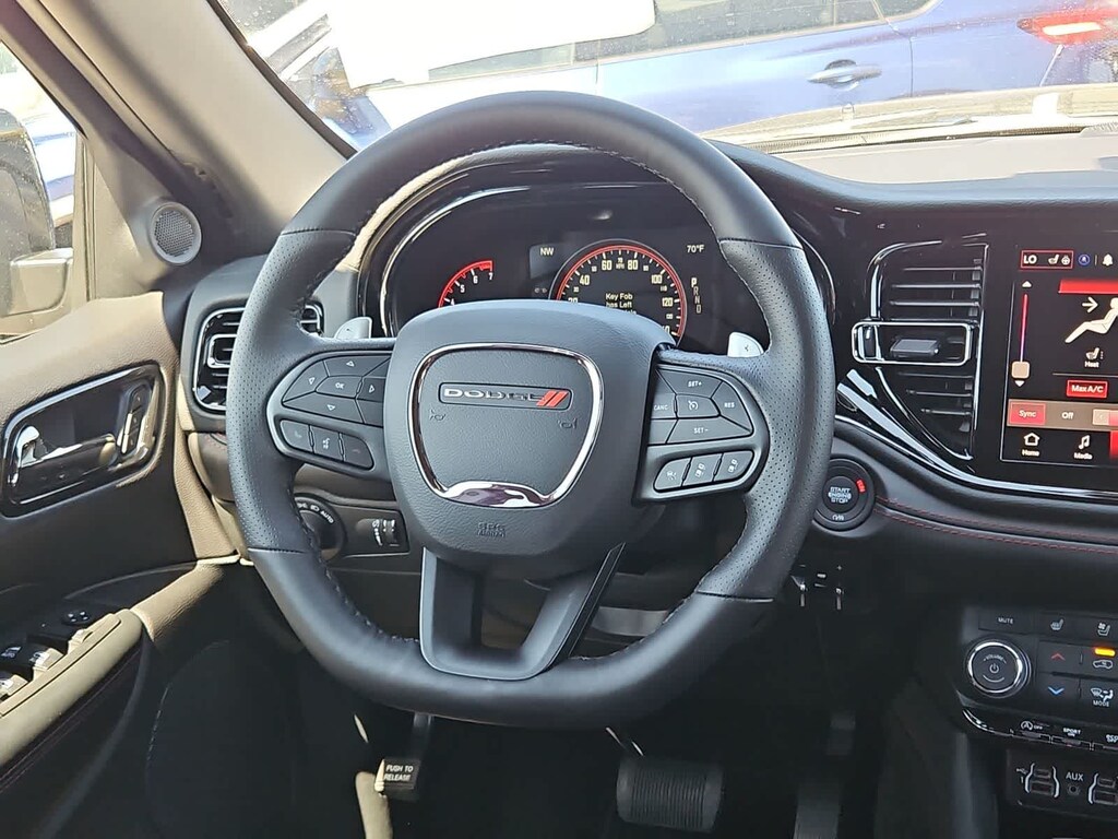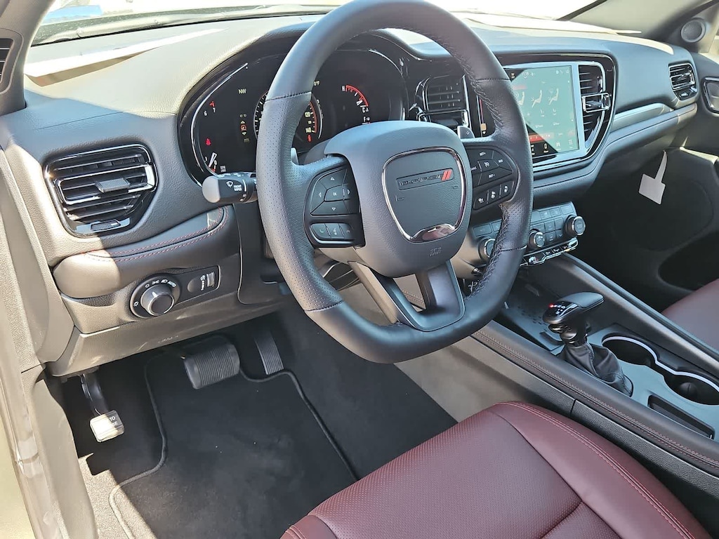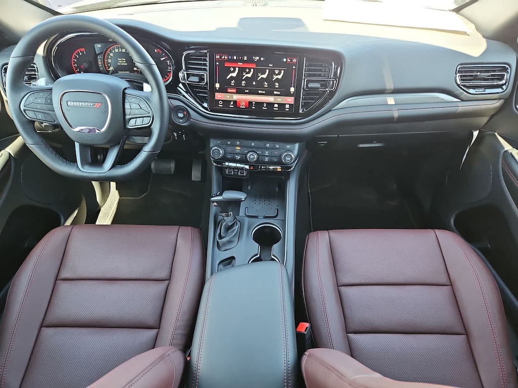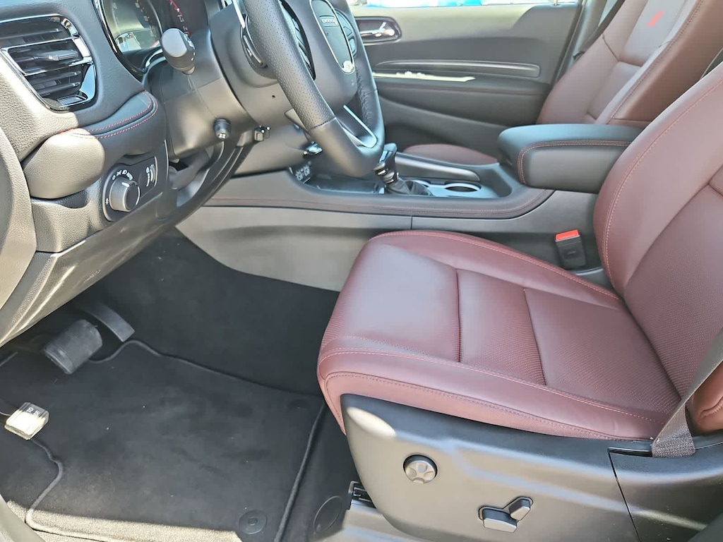 The Durango GT cabin supports up to seven occupants with the Plus Packs heated/ventilated leather-trimmed seats, power sunroof, heated rear seats, a trailer brake controller, adaptive cruise control, standard three-row seating, and features a 10.1-inch touchscreen powered by Uconnect 5. Wireless Apple CarPlay and Android Auto, Bluetooth, WiFi compatibility, and a 6-speaker Alpine audio system help keep everyone connected and entertained.