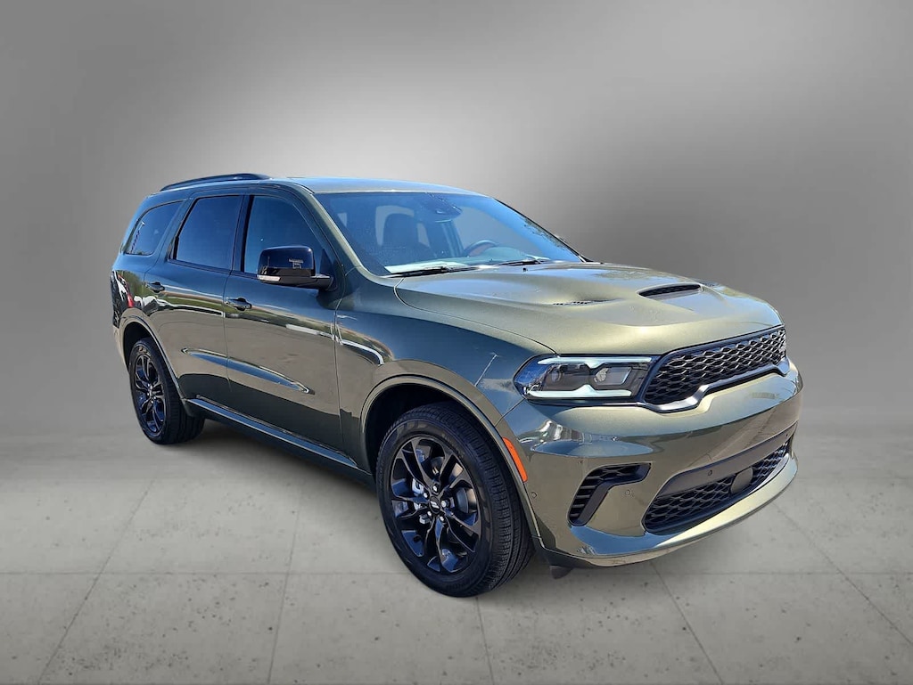 Built for action, the 2026 Dodge Durango GT AWD with the Plus Package in Green Machine delivers sporty strength and confidence for spirited adventures. Powered by a 5.7 Liter HEMI V8 serving up 360hp to a paddle-shifted 8 Speed Automatic transmission for moving with muscular confidence. This All Wheel Drive SUV also had a rear load-leveling suspension for enhanced capability, and it sees nearly 22mpg on the highway. Looking bold and assertive, our Durango shows off LED lighting, dual exhaust outlets, 20-inch alloy wheels, a power liftgate, black roof rails, integrated roof-rail crossbars, a Class IV hitch, and gloss-black heated power mirrors.