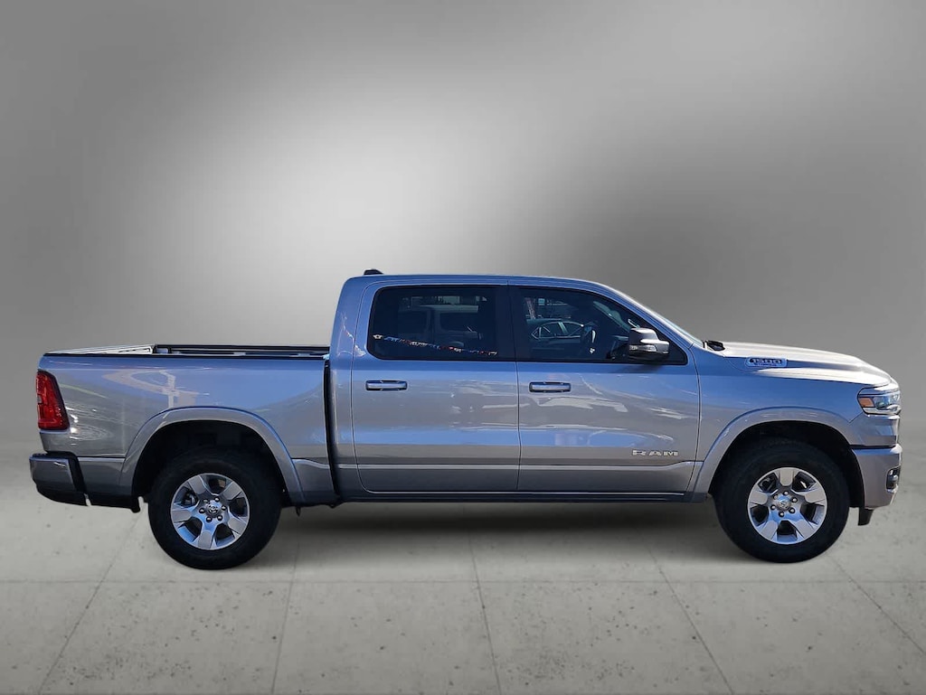 Tough and powerful, our 2025 RAM 1500 Big Horn Crew Cab 4X4 with the Level 1 Pack is built for bold challenges in Billet Silver Metallic! Motivated by a 3.6 Liter Pentastar V6 supplying 305hp to an 8 Speed Automatic transmission for robust real-world towing and hauling. Responsive handling inspires confidence in this Four Wheel Drive truck, which scores nearly 24mpg on the highway. Our RAM also rides with dynamic details like LED lighting, fog lamps, a Class IV receiver hitch, bold fender flares, alloy wheels, and a mighty RAM grille. Level 1 upgrades include multifunction mirrors and bed-mounted outlets powered by a 400W inverter.