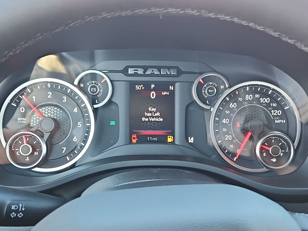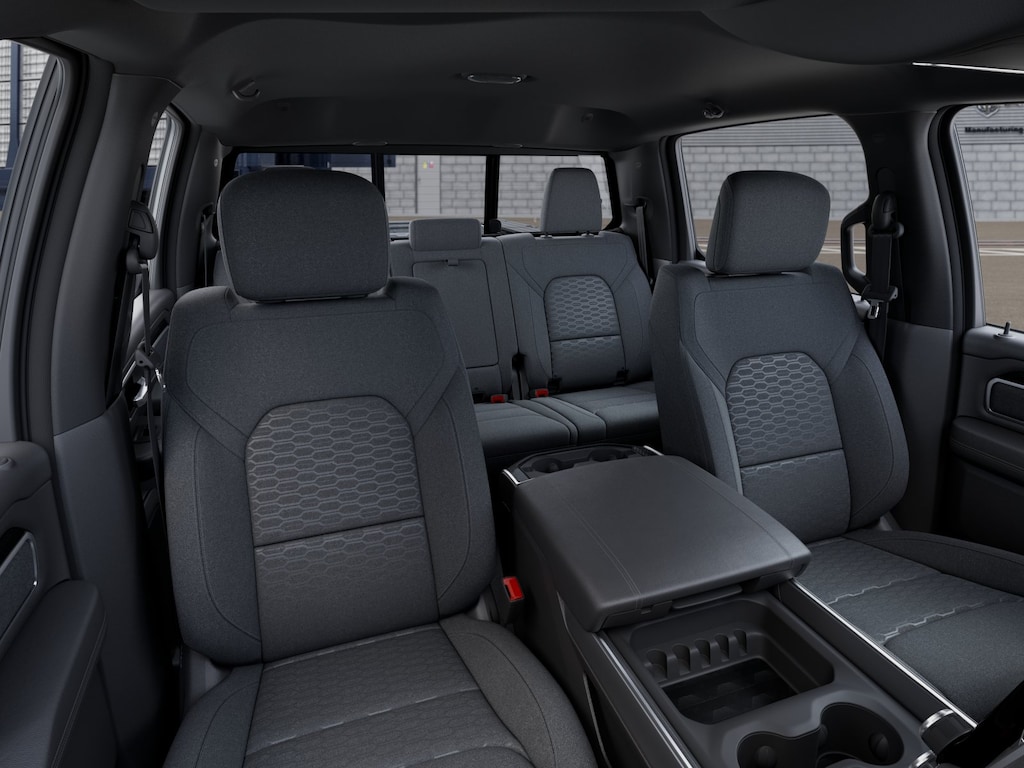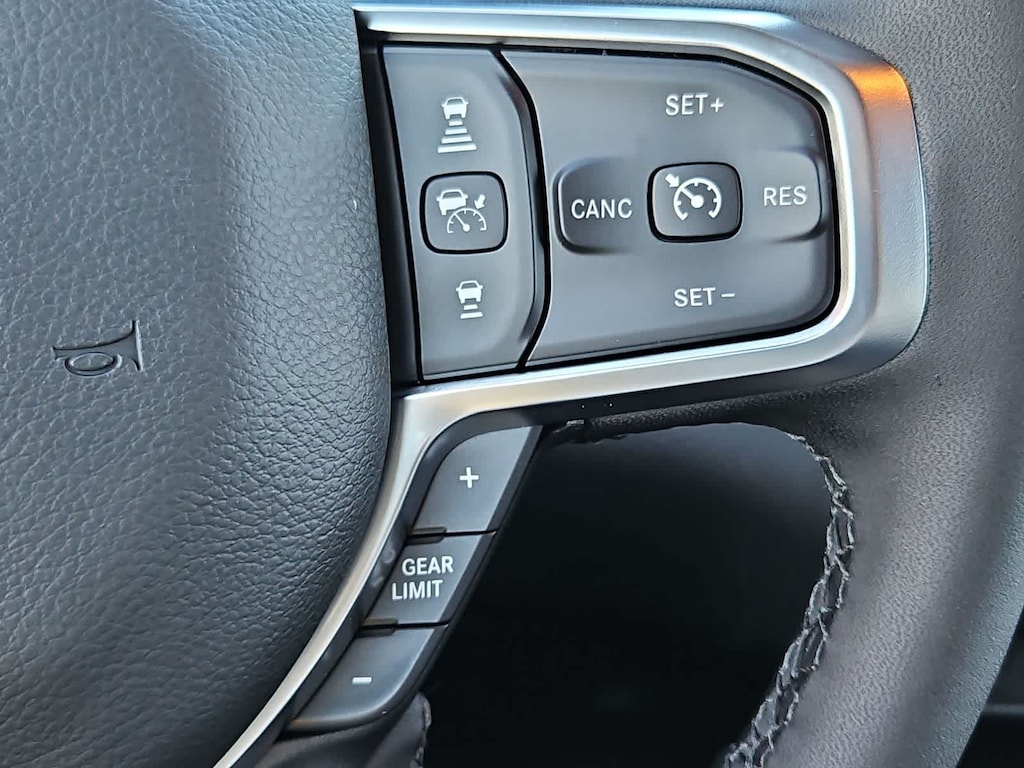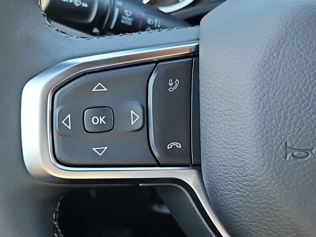 Many rewarding details are standard in our Big Horn cabin, starting with our Level 1 Equipment Packages universal garage door opener, power adjustable pedals, power sliding rear window, comfortable heated cloth seats, a heated leather-wrapped steering wheel, air conditioning, a RAM Clean-Air System, keyless access, push-button ignition, cruise control, door-sill scuff plates, and clever cargo space. The 8.4-inch touchscreen features voice control, Bluetooth, and a six-speaker sound system for intelligent infotainment.