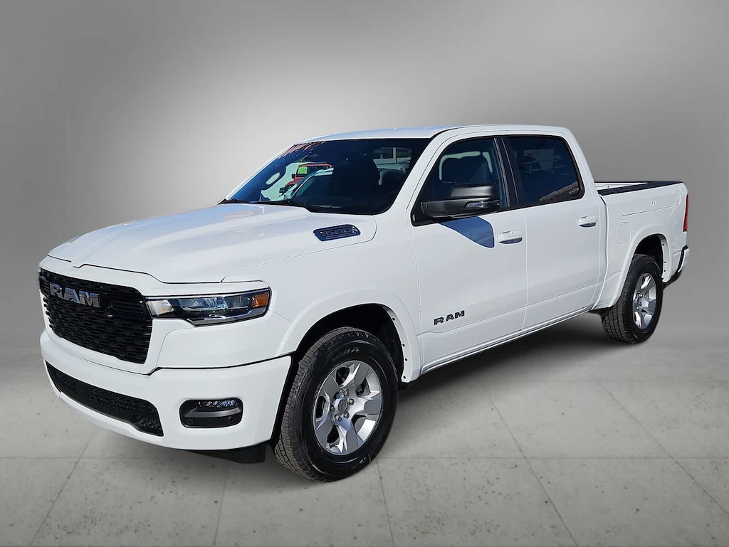 Our 2026 RAM 1500 Big Horn Crew Cab 4X4 with the Level 1 Equipment Package in Bright White delivers power and confident towing to help you take on more. Powered by a Twin-TurboCharged 3.0 Liter 6 Cylinder providing 420hp to an 8 Speed Automatic transmission for smart capability plus impressive towing. This Four Wheel Drive truck features responsive handling at work or play, and it achieves nearly 22mpg on the highway, thanks to its rugged design. Our RAM 1500 stands strong and looks great with bright bumpers, chrome grille accents, body-colored fender flares, and alloy wheels.