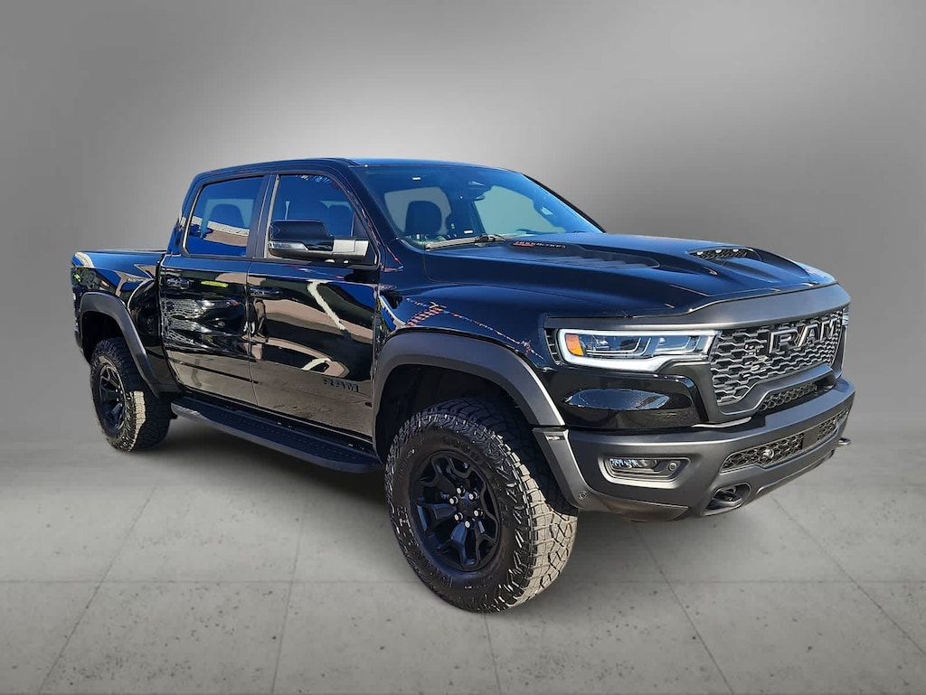 Engineered for extremes, our 2026 RAM 1500 RHO Crew Cab 4X4 in Diamond Black Crystal Pearl dominates trails with hardcore off-road confidence. Powered by a Twin-TurboCharged 3.0 Liter High Output Hurricane 6 Cylinder generating 540hp for an 8 Speed Automatic transmission with nine drive modes. Returning 16mpg on the highway, this Four Wheel Drive truck is a fearless trail machine with a high-speed E-Locker rear axle, an exclusive long-travel suspension, and extra ground clearance. Extra bold, our RAMs exterior showcases LED lighting, front/rear tow hooks, almost 12 inches of clearance, underbody skid plates, Bilstein Black Hawk adaptive suspension, off-road fender flares, alloy wheels, 35-inch tires, a performance hood, and a powder-coated front bumper.