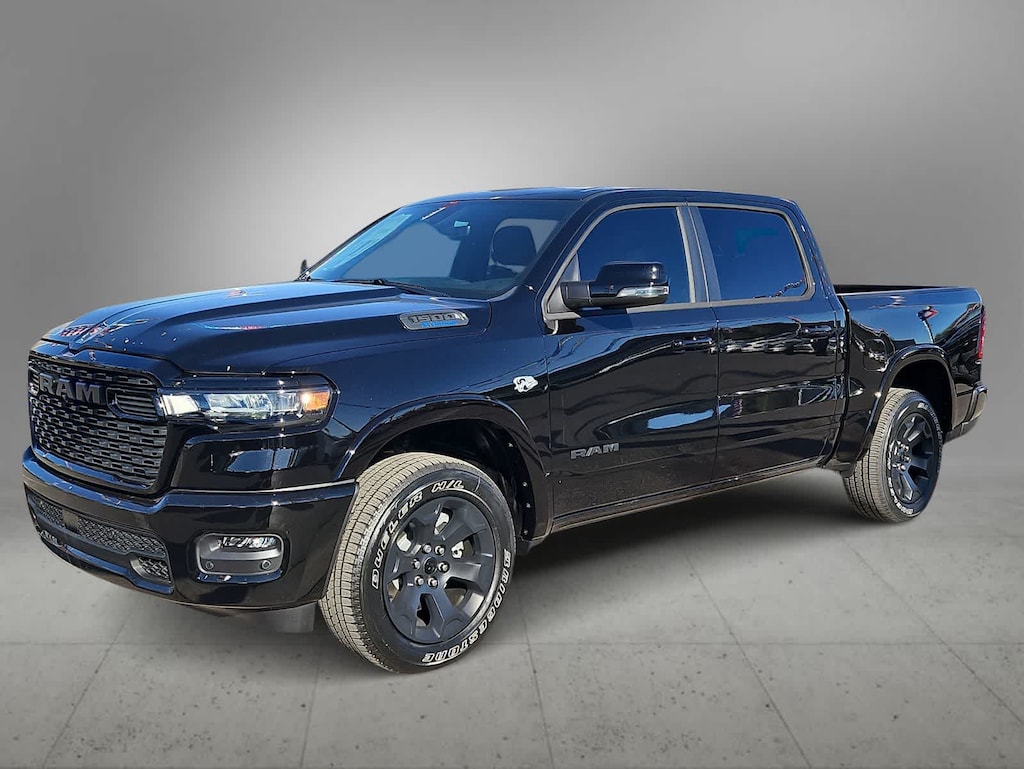 With mild-hybrid HEMI strength, our 2026 RAM 1500 Big Horn Crew Cab 4X4 in Diamond Black Crystal Pearl features the Level 2 Equipment Package. Powered by a 5.7 Liter HEMI eTorque V8 with a 48V Mild-Hybrid system providing 395hp to an 8 Speed Automatic transmission for smart capability plus impressive towing. This Four Wheel Drive truck features responsive handling at work or play, and it achieves nearly 22mpg on the highway, thanks to its rugged design. Our RAM 1500 stands strong and looks great with bright bumpers, chrome grille accents, and alloy wheels.