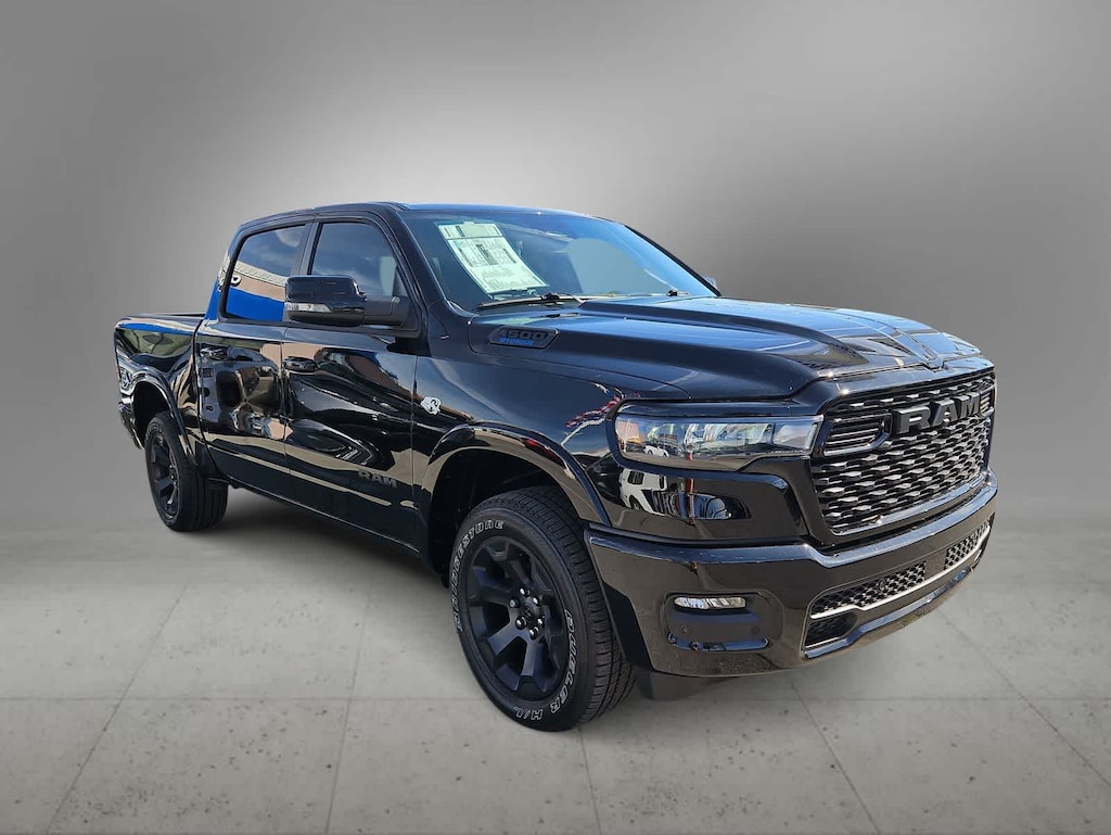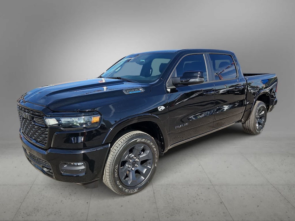 With mild-hybrid HEMI strength, our 2026 RAM 1500 Big Horn Crew Cab 4X4 in Diamond Black Crystal Pearl features the Level 2 Equipment Package. Powered by a 5.7 Liter HEMI eTorque V8 with a 48V Mild-Hybrid system providing 395hp to an 8 Speed Automatic transmission for smart capability plus impressive towing. This Four Wheel Drive truck features responsive handling at work or play, and it achieves nearly 22mpg on the highway, thanks to its rugged design. Our RAM 1500 stands strong and looks great with bright bumpers, chrome grille accents, and alloy wheels.