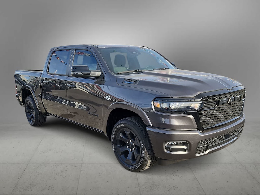 Smart and versatile, our 2026 RAM 1500 Big Horn Crew Cab 4X4 in Granite Crystal Metallic combines advanced features with dependable everyday utility. Powered by a 5.7 Liter HEMI eTorque V8 with a 48V Mild-Hybrid system providing 395hp to an 8 Speed Automatic transmission for smart capability plus impressive towing. This Four Wheel Drive truck features responsive handling at work or play, and it sees nearly 22mpg on the highway with a rugged design. Our RAM 1500 stands strong and looks great with bright bumpers, chrome grille accents, and alloy wheels.
