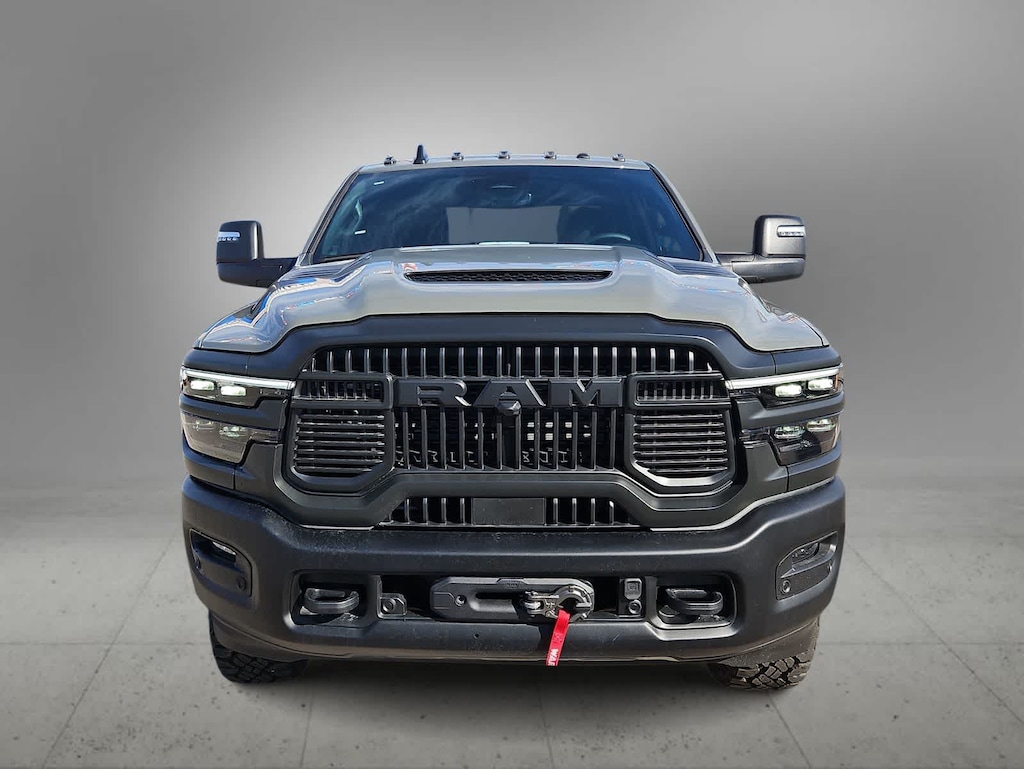 Defy expectations in our 2026 RAM 2500 Rebel Crew Cab 4X4 that delivers enhanced capability in Ceramic Grey Clearcoat! Motivated by a 6.4 Liter HEMI V8 supplying 410hp to an 8 Speed Automatic transmission. A rugged Rebel suspension, hill-descent control, and electronic limited-slip differential raise the bar for off-road performance, and this Four Wheel Drive truck features a trail-ready exterior. Check out the LED lighting, fog lamps, Mopar sport hood, deployable bed step, powder-coated bumpers, black alloy wheels, matching fender flares, rock rails with step pad, multifunction trailering mirrors, a 115V/400W outlet, spray-on Bedliner, front electric winch, and a Class V receiver hitch.
