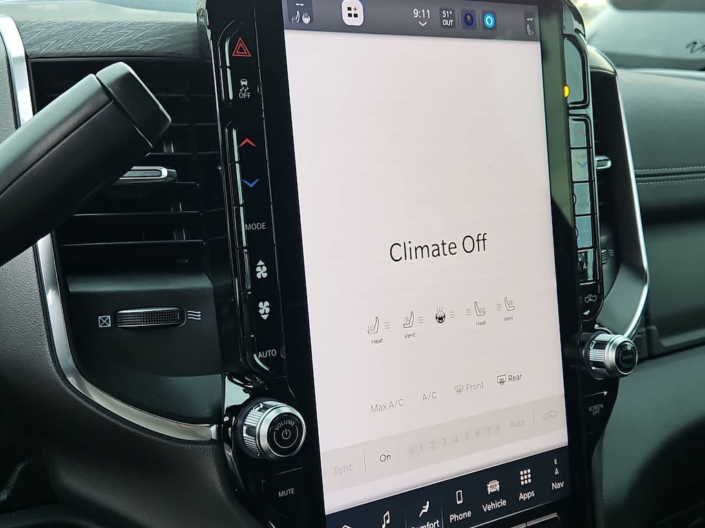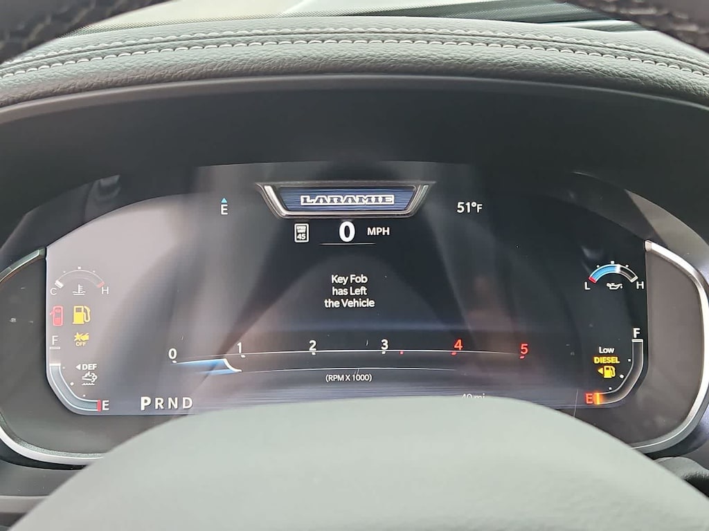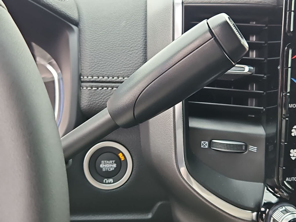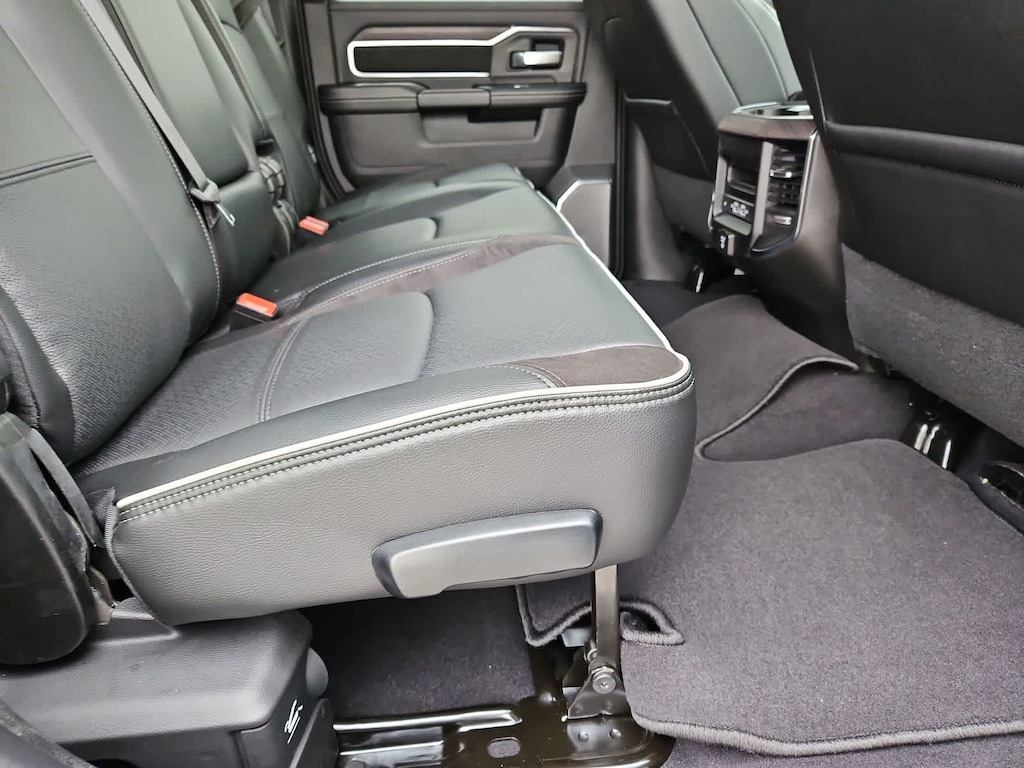 Our Laramie cabin offers a commanding experience in comfort, thanks to the Level 2 Plus Equipment Packs dual wireless charging, heated and ventilated leather power front seats, a leather-wrapped steering wheel, dual-zone automatic climate control, an interior 115V/400W outlet, keyless access and ignition, power-adjustable pedals with memory, a power sliding rear window, and remote start. Full-color navigation helps you find your way while staying connected with a 14.4-inch touchscreen, Wi-Fi, Amazon Alexa, Android Auto, Apple CarPlay, Bluetooth, voice control, and 17-speaker Harman Kardon audio.