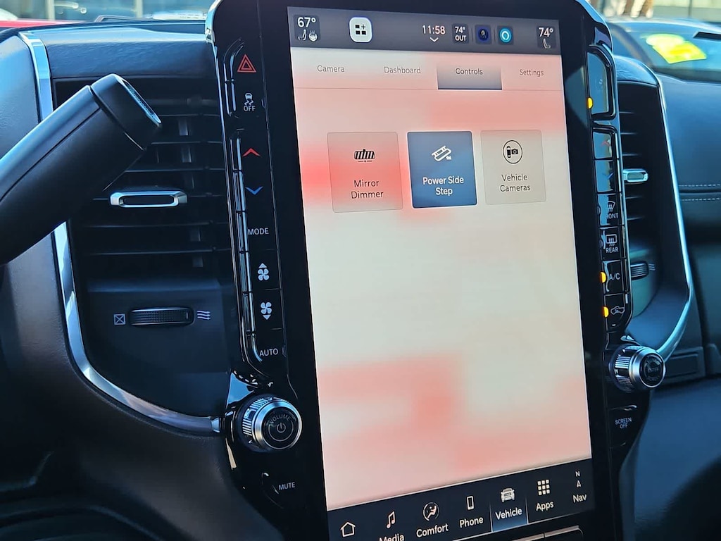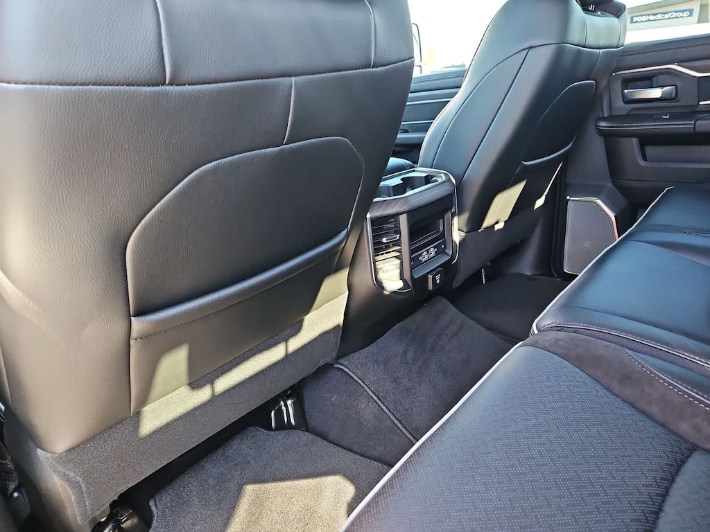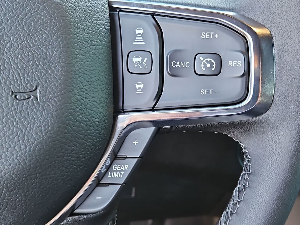 Our Laramie cabin offers a commanding experience in comfort, thanks to its heated and ventilated leather power front seats, a leather-wrapped steering wheel, dual-zone automatic climate control, an interior 115V/400W outlet, keyless access and ignition, power-adjustable pedals with memory, a power sliding rear window, and remote start. Full-color navigation helps you find your way while staying connected with a 12.0-inch touchscreen, WiFi compatibility, Amazon Alexa compatibility, Android Auto, Apple CarPlay, Bluetooth, voice control, and Alpine audio.