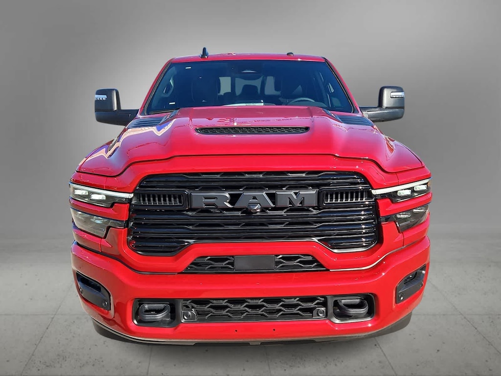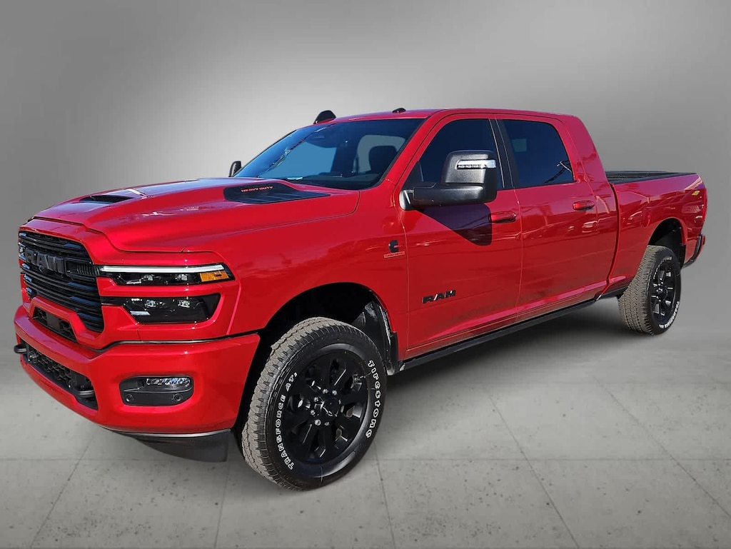 Dominate with Diesel power in our 2026 RAM 2500 Laramie Mega Cab 4X4 with the Level 1 Package, which welcomes upscale features in Flame Red! Motivated by a High-Output TurboCharged 6.7 Liter Cummins Diesel 6 Cylinder serving up 430hp and 850lb-ft of torque to a 6 Speed Automatic transmission for job-friendly payload and trailer ratings. This Four Wheel Drive truck also moves with a heavy-duty suspension for a refined ride even when pulling at your limits. Strong and stylish, our RAM boasts a distinctive chrome billet grille, 18-inch polished aluminum wheels, heated power trailer mirrors, a 115V/400W outlet, remote tailgate release, sunroof, a spray-on bedliner, and LED lighting for its Class V receiver hitch.
