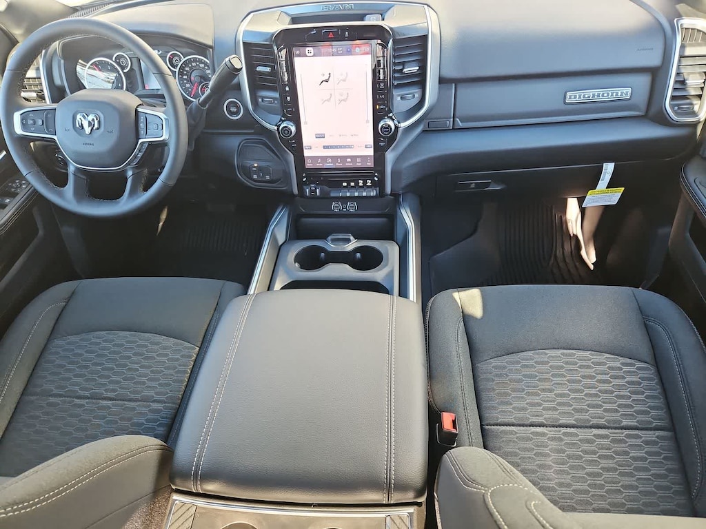 Our Big Horn cabin rewards you with satisfying features engineered for everyday use. Its easy to stay relaxed on the road with supportive cloth seats, a tilt-adjustable steering wheel, air conditioning, power accessories, pushbutton ignition, and keyless entry. Digital convenience comes into the picture with an 8.4-inch touchscreen, a 3.5-inch driver display, Uconnect 5, WiFi compatibility, Apple CarPlay/Android Auto, Bluetooth, voice command, and a six-speaker sound system.