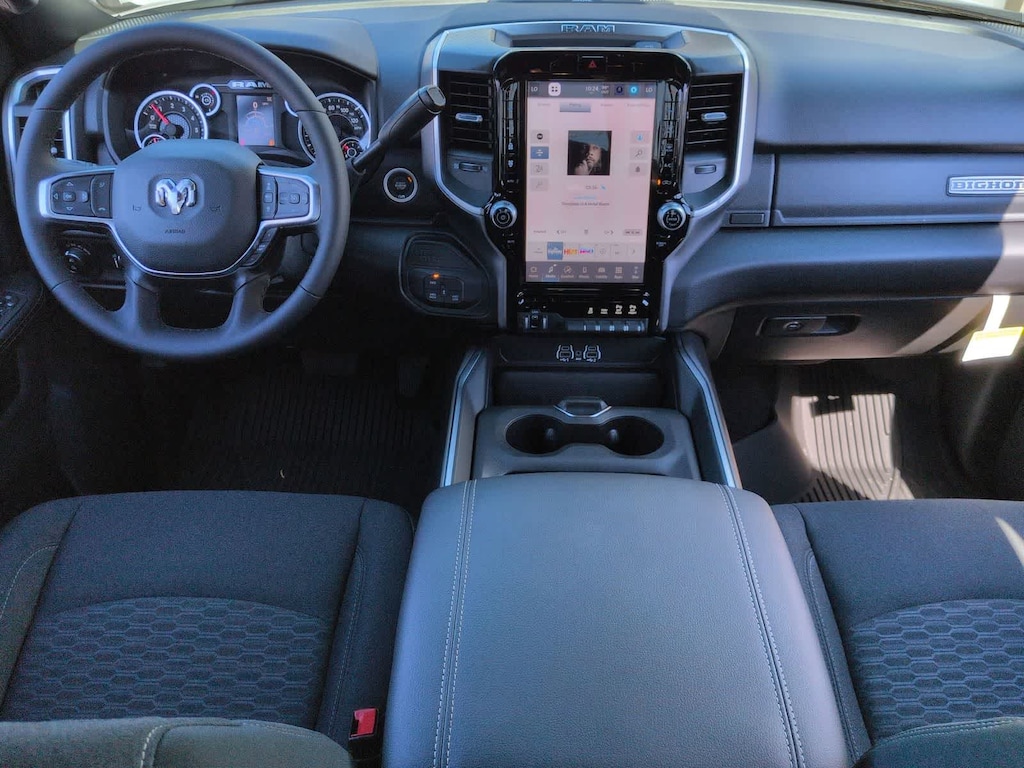 Our Big Horn cabin rewards you with satisfying features engineered for everyday use. Its easy to stay relaxed on the road with supportive cloth seats, a tilt-adjustable steering wheel, air conditioning, power accessories, pushbutton ignition, and keyless entry. Digital convenience comes into the picture with an 8.4-inch touchscreen, a 3.5-inch driver display, WiFi compatibility, Apple CarPlay/Android Auto, Bluetooth, voice command, and a six-speaker sound system.