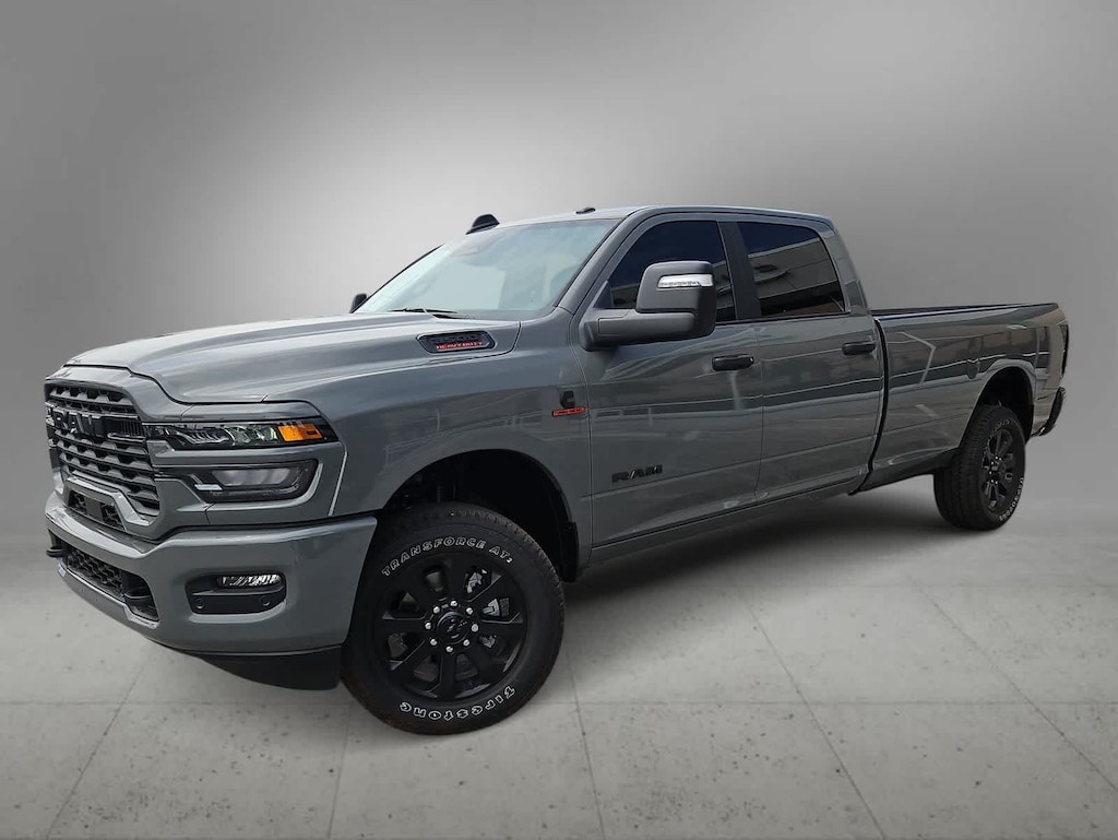 Our Diesel driven 2026 RAM 3500 Big Horn Crew Cab 4X4 with the Level 1 Plus Equipment Package boasts capability and comfort for the long haul in Ceramic Gray Clearcoat! Powered by a TurboCharged 6.7 Liter High Output Cummins Diesel 6 Cylinder serving up 430hp and 1075lb-ft of torque an 8 Speed Automatic transmission, so you can pull with bold confidence. This Four Wheel Drive truck also comes with an anti-spin rear differential to get a better grip on hard work, and it stands strong with a rugged RAM design. Exterior details include our packages deployable bed step, spray-on Bedliner, LED lighting, fog lamps, heated power trailer mirrors, chrome bumpers, alloy wheels, and a Class V receiver hitch with an LED hitch lamp. The result is one good-looking truck!