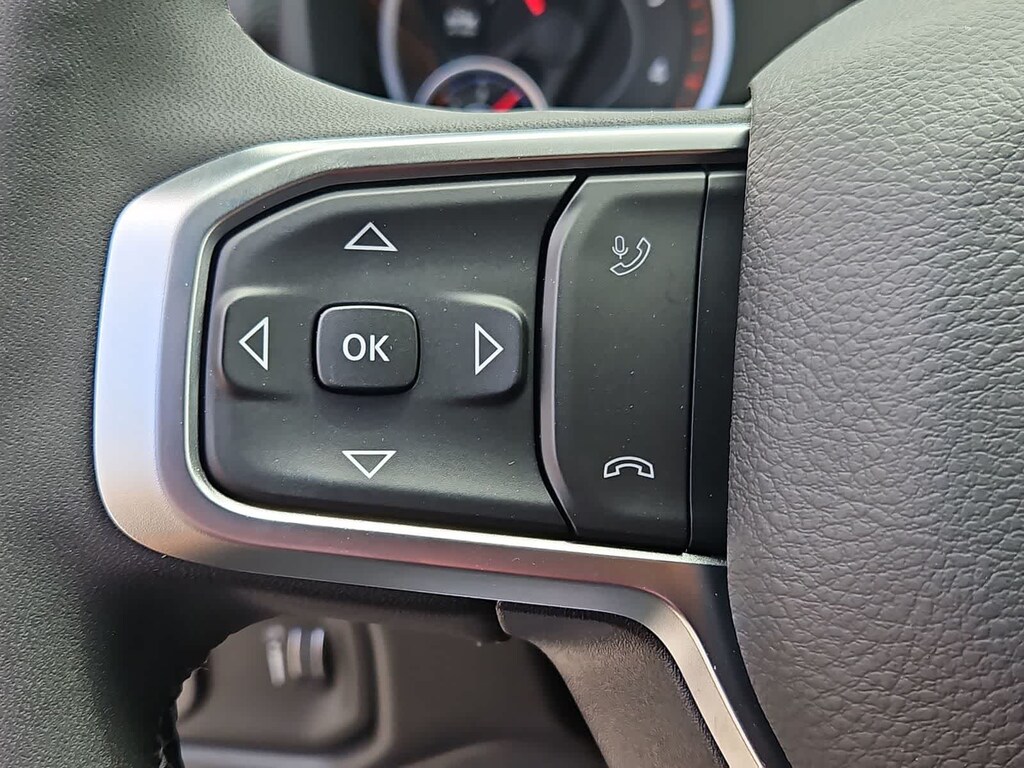Our Big Horn cabin rewards you with satisfying features engineered for everyday use. Its easy to stay relaxed on the road with our Level 1 Plus Equipment Packages supportive cloth seats, a tilt-adjustable steering wheel, dual climate control, power accessories, pushbutton ignition, remote start, and keyless entry. Digital convenience comes into the picture with a Uconnect 5 12.0-inch touchscreen, a 3.5-inch driver display, WiFi compatibility, Apple CarPlay/Android Auto, Bluetooth, voice command, and an Alpine nine-speaker sound system.