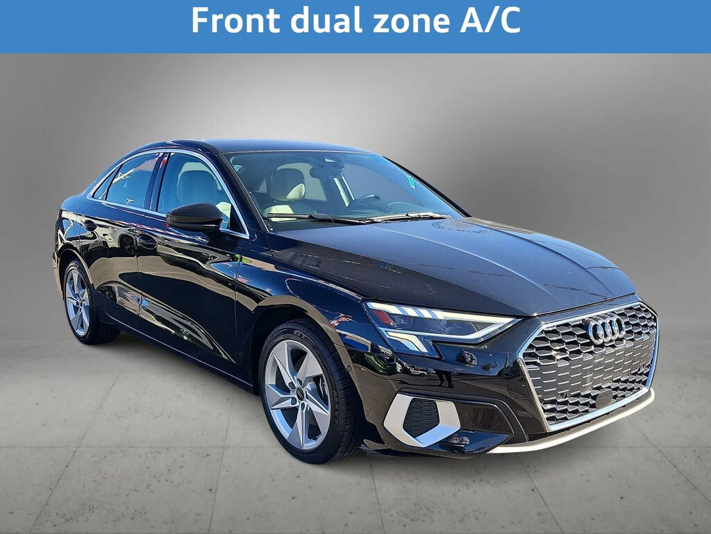 Made to move, our One Owner, Accident Free 2023 Audi A3 Premium Sedan offers more than meets the eye in Brilliant Black! Powered by a TurboCharged 2.0 Liter 4 Cylinder providing 201hp matched to a paddle-shifted 7 Speed S tronic Automatic transmission to reach a top speed of 130mph. Showing off sharp handling, this Front Wheel Drive sedan also achieves nearly 38mpg on the highway. Our A3 is streamlined and stylish with LED lighting, dynamic turn signals, a panoramic sunroof, heated power mirrors, and alloy wheels.