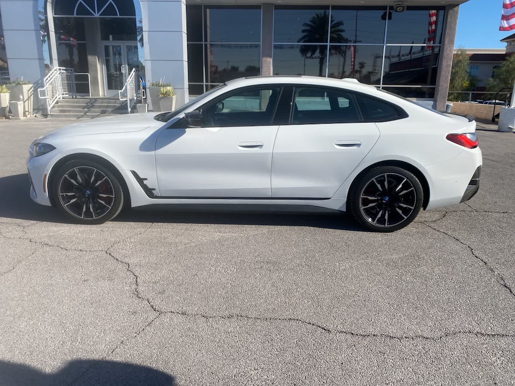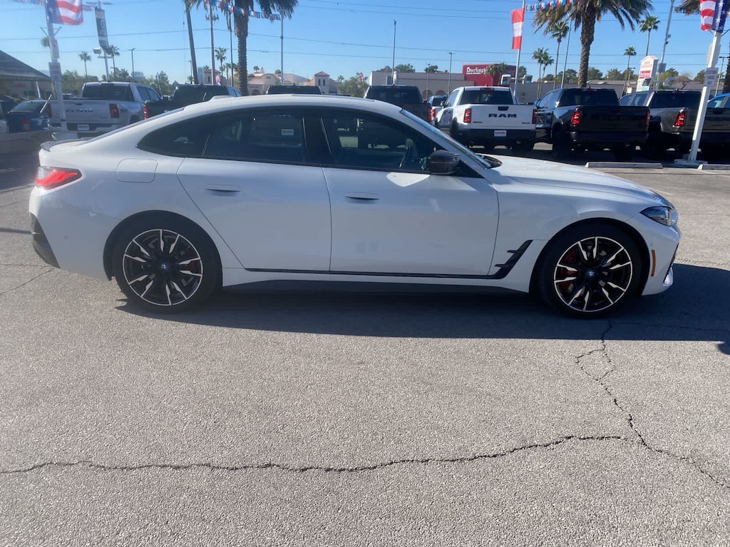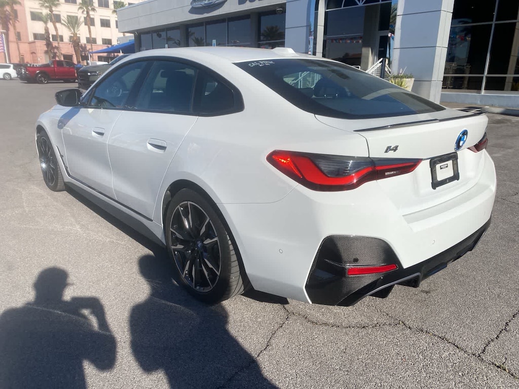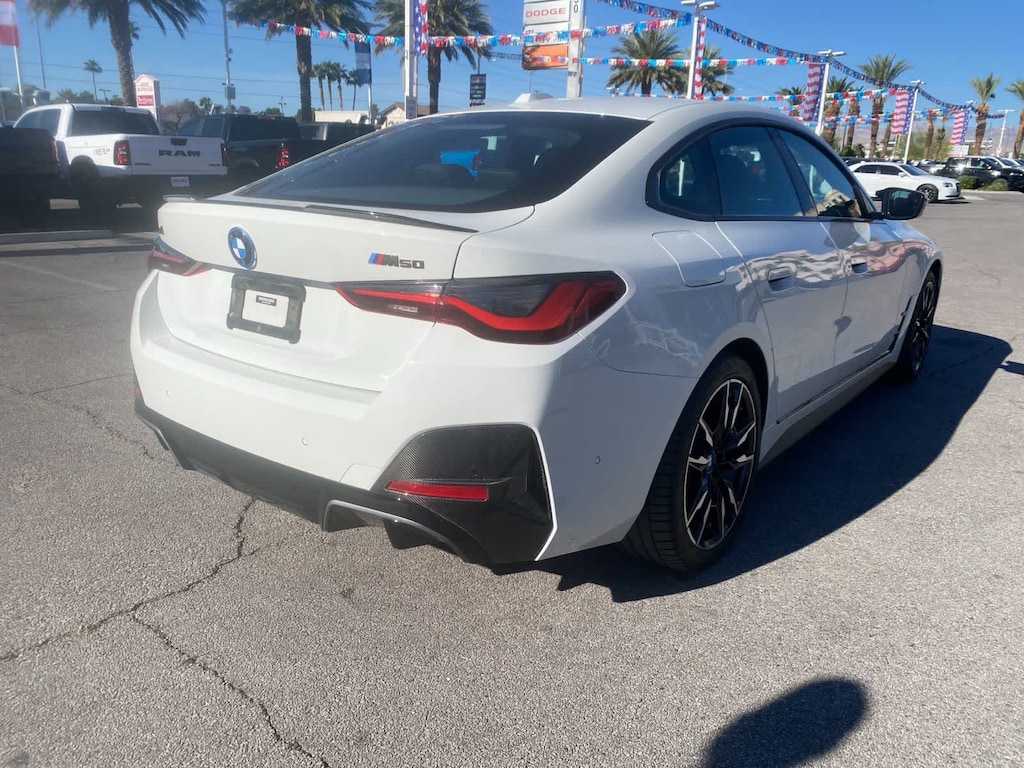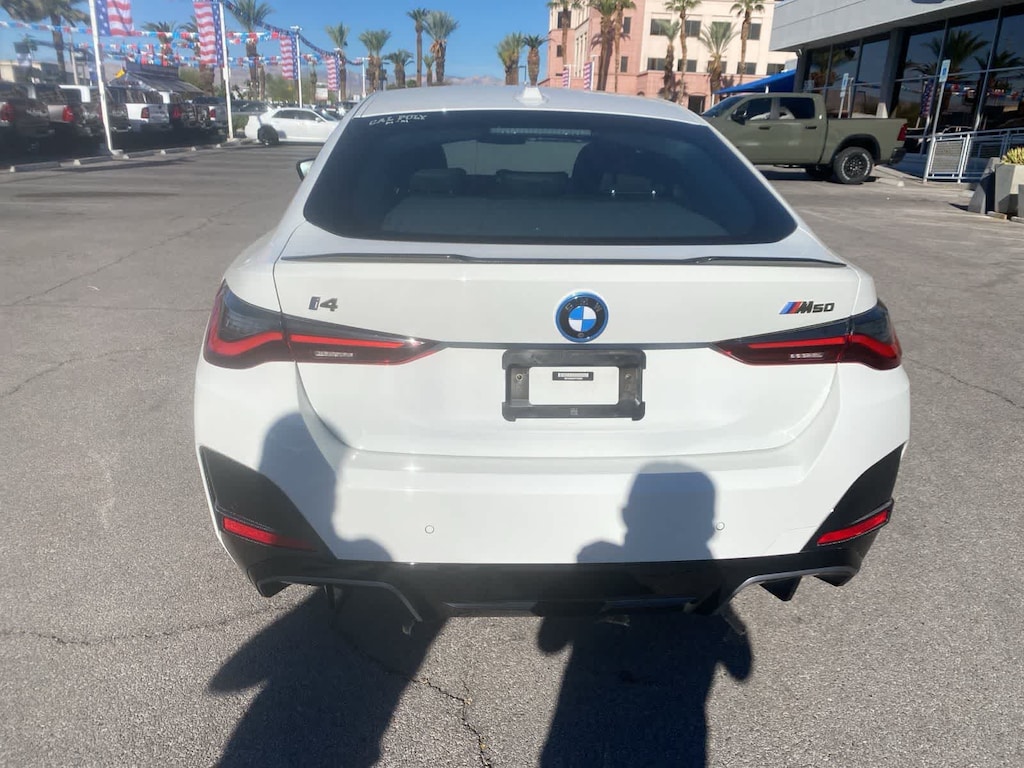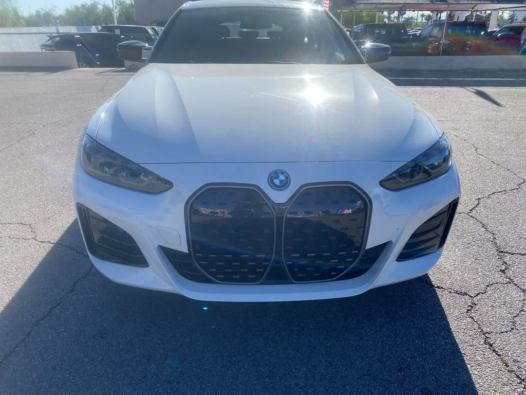 Our One Owner, Accident Free 2023 BMW M Series i4 M50 xDrive Gran Coupe combines electric performance and efficiency with a detailed Alpine White design! Powered by Dual Electric Motors generating a combined 536hp for a Single Speed Automatic transmission so you can rush to 60mph in 3.7 seconds. This All Wheel Drive four-door coupe also has an 81kWh battery pack for an EV travel range of nearly 270 miles at nearly 98MPGe on the highway. With a sleek silhouette, our i4 earns its M credentials with sport-tuned suspension and braking system, plus its at the forefront of style with LED lighting, a power sunroof, Shadowline accents, and 18-inch alloy wheels.