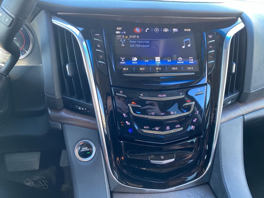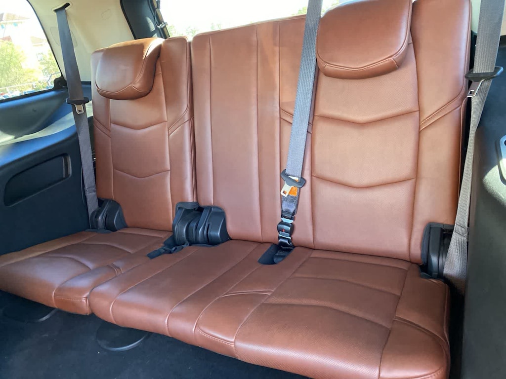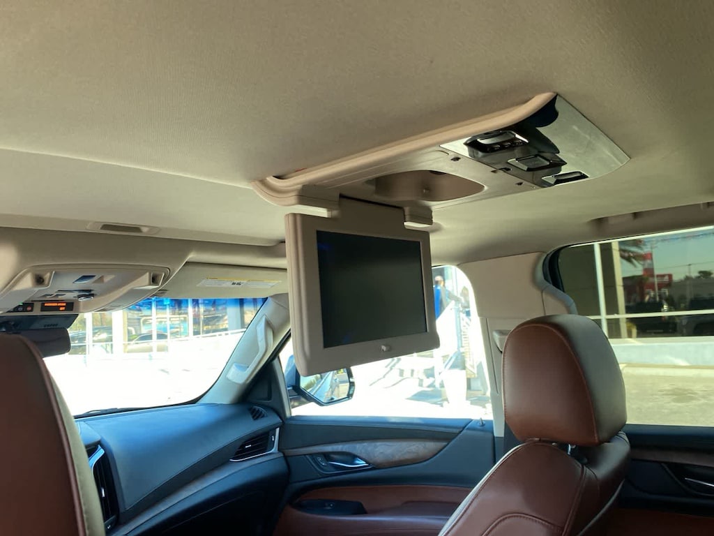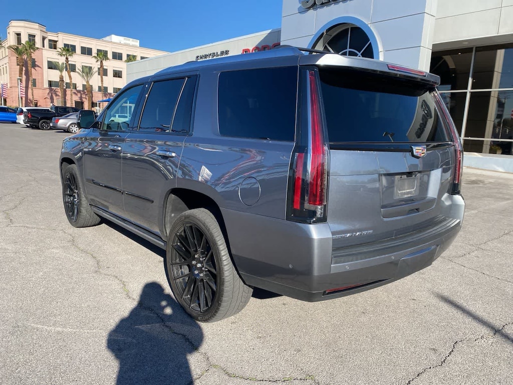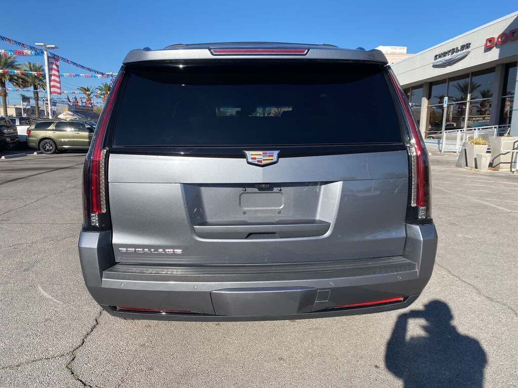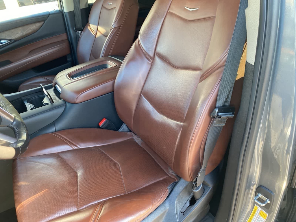 Clean CARFAX. Satin Steel Metallic 2019 Cadillac Escalade Premium Luxury RWD 10-Speed Automatic with Overdrive 6.2L V8 Kona Brown With Jet Black Accents Leather.