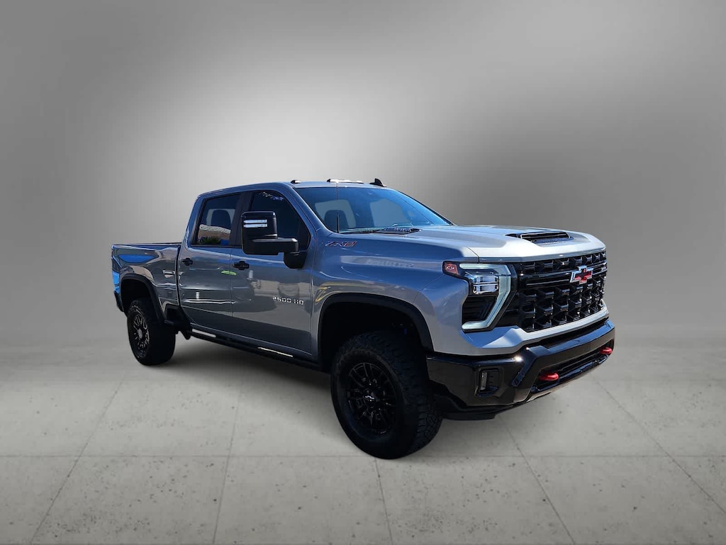 Our Diesel powered 2024 Chevrolet Silverado 2500 ZR2 Crew Cab 4X4 with the Technology Pack helps handle tough trail work in Sterling Gray Metallic! Motivated by a TurboCharged 6.6 Liter DuraMax Diesel V8 delivering 470hp and 975lb-ft of torque to a 10 Speed Automatic transmission. This Four Wheel Drive truck extends your reach with a rugged ZR2 suspension, an electronic-locking rear differential, robust skid plates, frame-mounted tow hooks, an AutoTrac 2-speed transfer case, and digital variable steering. Our Silverado brings you bold style with animated LED lighting, a spray-on bedliner, a sunroof, a power up/down tailgate, power-folding trailer mirrors, and alloy wheels.