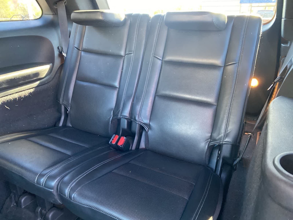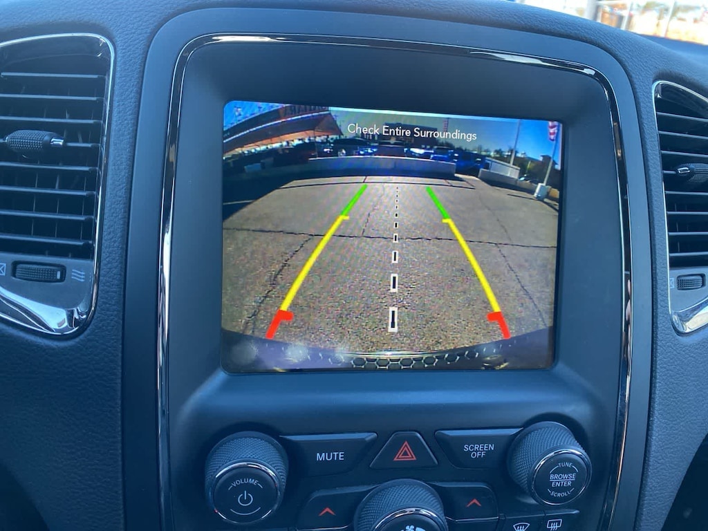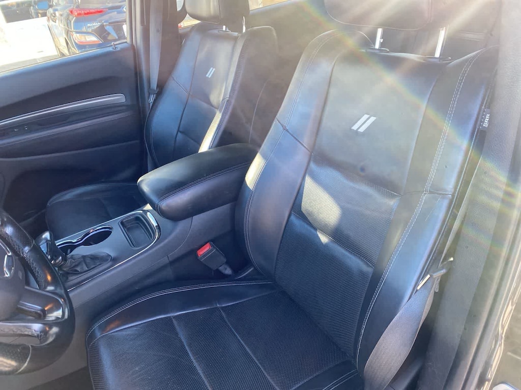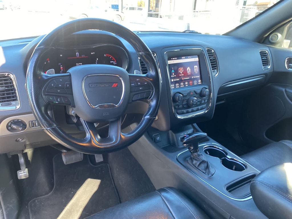 The R/T then brings upscale athletic details into its seven-place cabin. That means you can conquer the road in comfort with heated leather power front seats, a heated second row, a heated steering wheel, tri-zone automatic climate control, and plenty of cargo space. Uconnectî 8.4 technology anchors Durangos infotainment system, which supports full-color navigation, Android Autoî, Apple CarPlayî, Bluetoothî, voice command, and a nine-speaker Alpine sound system.