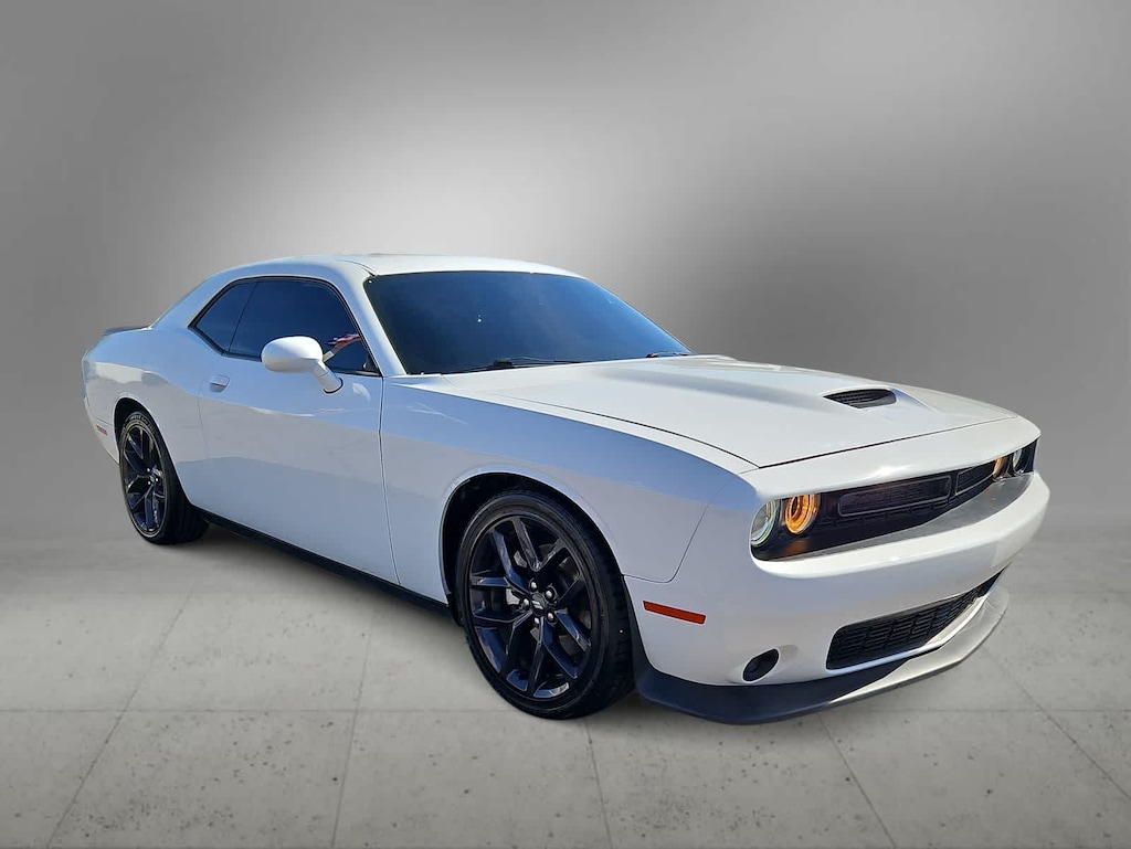A modern muscle machine, our 2021 Dodge Challenger GT Coupe moves you straight to the head of the pack in White Knuckle! Powered by a 3.6 Liter Pentastar V6 supplying 303hp matched to a paddle-shifted 8 Speed Automatic transmission for bold acceleration on your command. Go ahead and put the performance suspension to the test with this Rear Wheel Drive coupe that rides like its on rails yet still returns nearly 30mpg on the highway. Impressive at any speed, our Challenger stands out with its LED lighting, fog lamps, SRT front splitter, rear spoiler, a functional hood scoop, and stunning 20-inch alloy wheels with two-piece center caps.