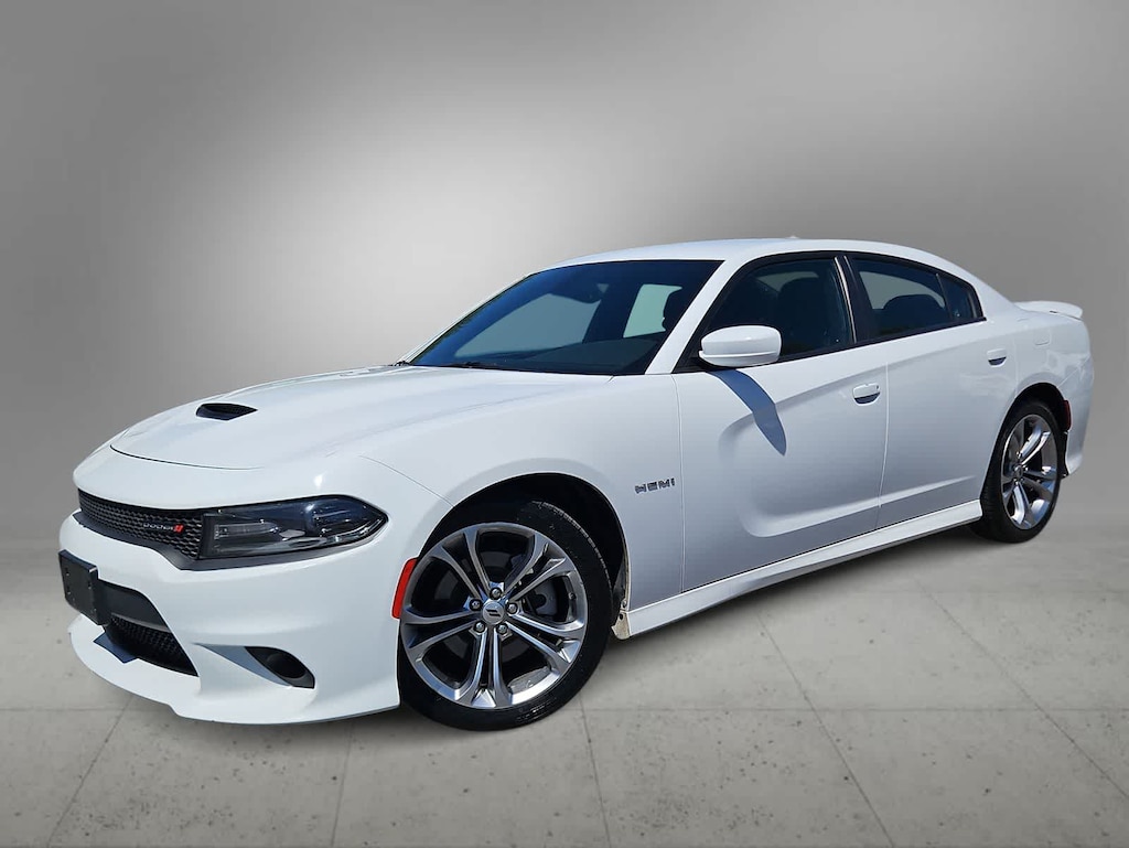 Get into our bold One Owner, Accident Free 2021 Dodge Charger R/T Sedan in White Knuckle, and youve got command of the only muscle car that comes with four doors! Powered by a 5.7 Liter HEMI V8 offering 370hp to a paddle-shifted 8 Speed Automatic transmission for seriously muscular acceleration. Riding on a performance suspension, this Rear Wheel Drive sedan also hugs the road for high-speed cornering and returns nearly 25mpg on the highway as a bonus. Our Charger adds an aggressive, revved-up look with LED lighting, a functional hood scoop, a one-piece rear spoiler, and Satin Carbon 20-inch alloy wheels.