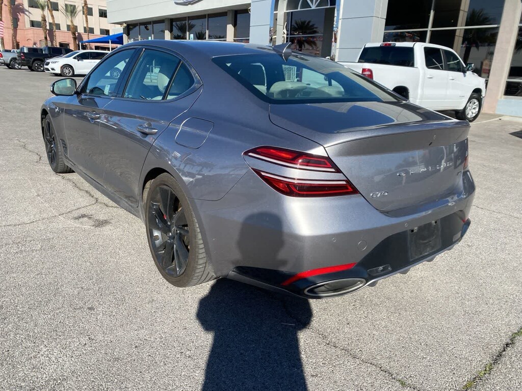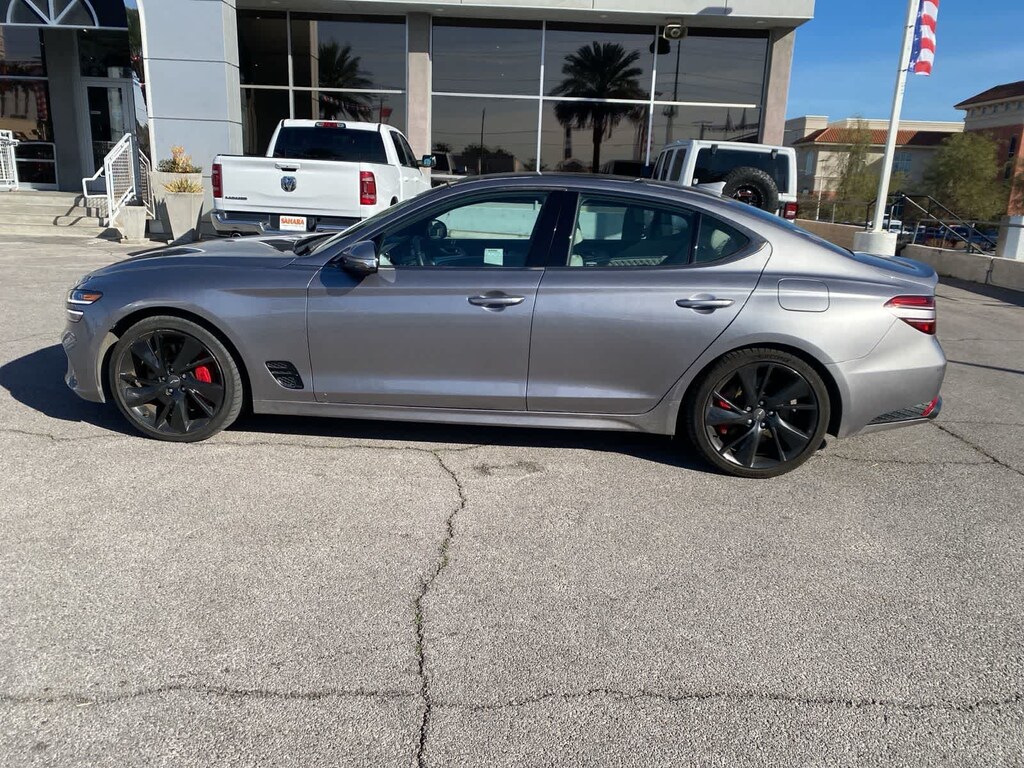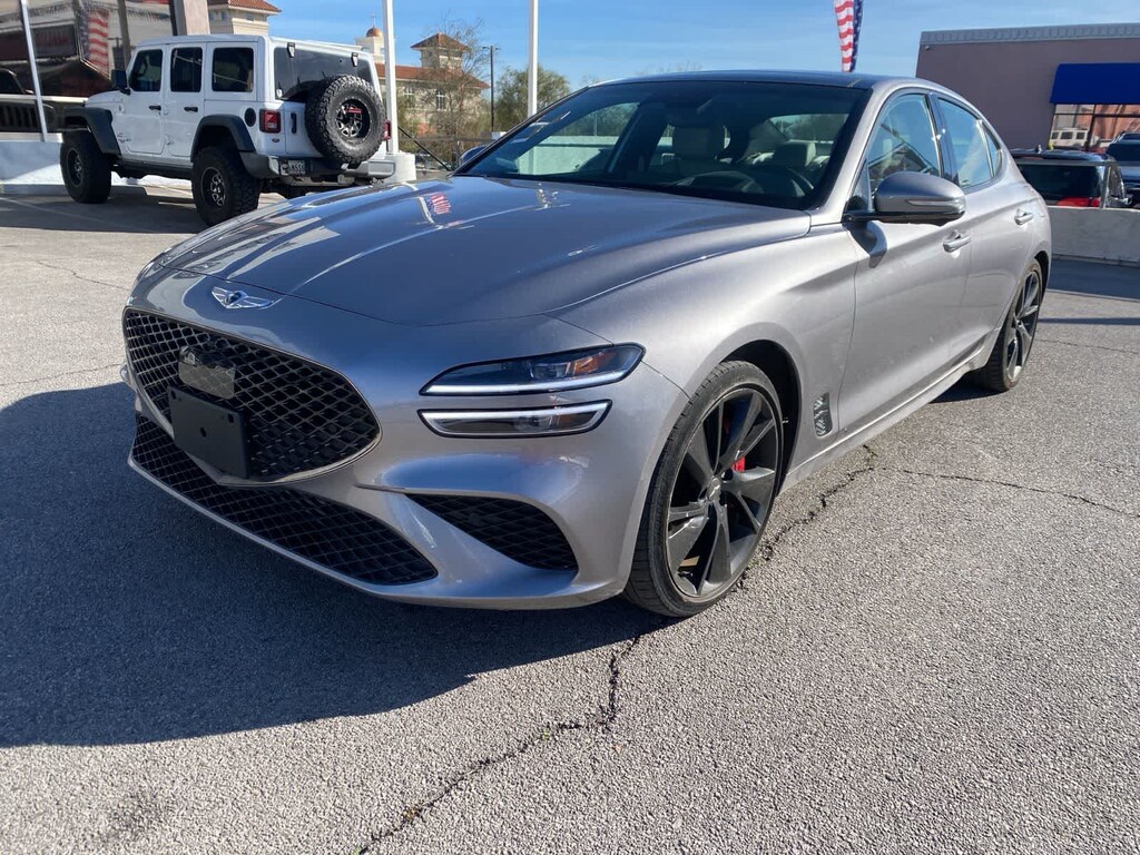 Our One Owner, Accident Free 2023 Genesis G70 3.3T Sedan with the Sport Prestige Pack blends breathtaking performance with a bold visual identity in Savile Silver! Powered by a Twin-TurboCharged 3.3 Liter V6 that provides 365hp to a paddle-shifted 8 Speed Automatic transmission with launch control to leap off the line. This Rear Wheel Drive sedan also sees nearly 27mpg on the highway with our Sport Prestige Packs style and substance upgrades. They add an electronically controlled suspension, Brembo brakes, a limited-slip rear differential, a wide sunroof, sport alloy wheels, a variable exhaust system, and a dark chrome grille to exclusive Two Line LED headlamps and a hands-free trunk.