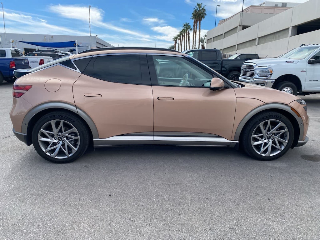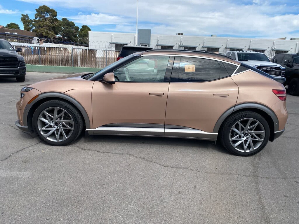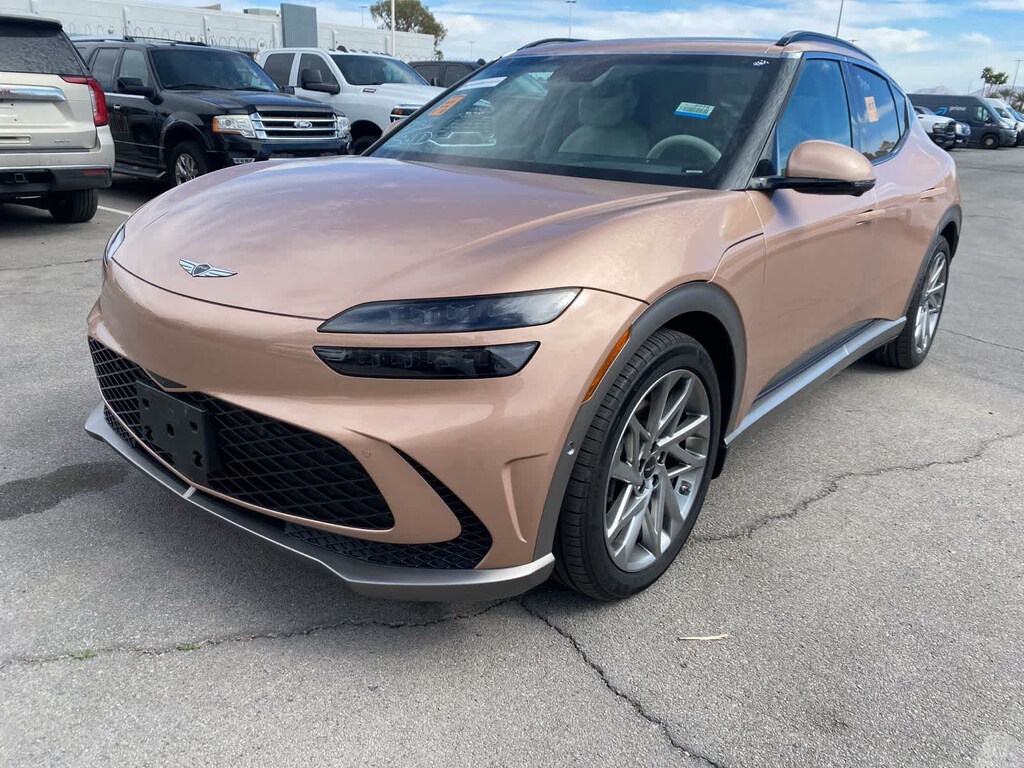 Athletically elegant, our One Owner, Accident Free 2023 Genesis GV60 Advanced AWD helps deliver electrified excitement in Atacama Copper! Powered by Dual Electric Motors that generate a combined 429hp for a Single Speed Automatic transmission for everyday thrill rides. This All Wheel Drive SUV also features a 77.4kWh battery pack for an EV range of nearly 235 miles on a single charge. Our GV60s aggressively crafted exterior creates a scene with its fixed glass roof, LED lighting, stylish alloy wheels, and a hands-free liftgate for deluxe convenience.