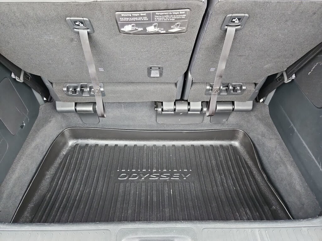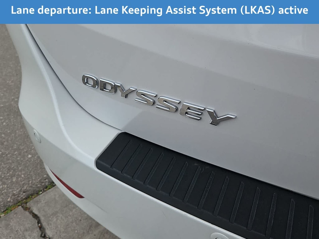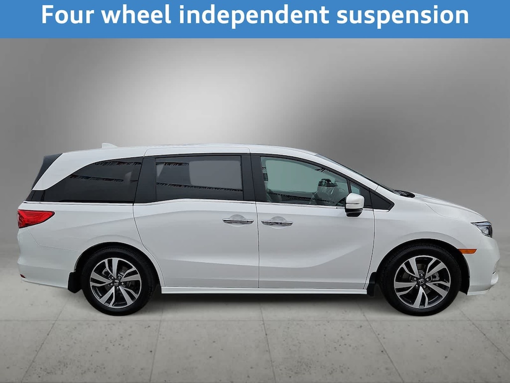 CARFAX One-Owner. Clean CARFAX. White 2023 Honda Odyssey Touring FWD 10-Speed Automatic 3.5L V6 SOHC i-VTEC 24V 3rd row seats: split-bench, 7 Speakers, Apple CarPlay/Android Auto, Blind Spot Information (BSI) System warning, Four wheel independent suspension, Front dual zone A/C, Heated door mirrors, Heated Front Bucket Seats, Lane departure: Lane Keeping Assist System (LKAS) active, Leather Seat Trim, Leather steering wheel, Memory seat, Navigation system: Honda Satellite-Linked Navigation System, Power driver seat, Power Liftgate, Power moonroof, Power passenger seat, Radio: 160-Watt AM/FM/HD/SiriusXM Audio System, Rear Parking Camera, Reclining 3rd row seat, Spoiler, Steering wheel mounted audio controls, Telescoping steering wheel, Wheels: 19 Machine-Finished Alloy.