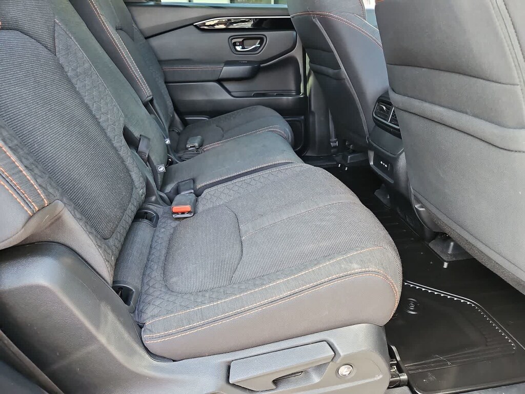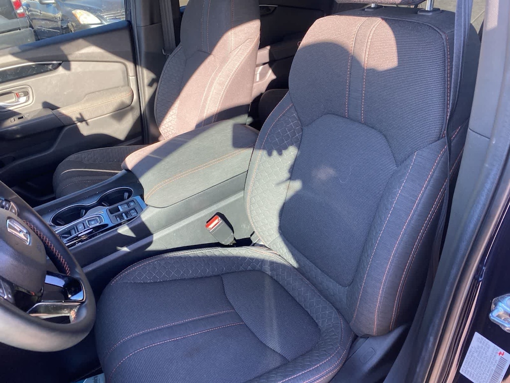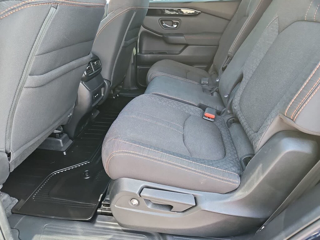 Our Sport cabin specializes in family comfort and first-class versatility. Folks love its heated cloth power front seats, easy-folding second/third rows, leather-wrapped steering wheel, tri-zone automatic climate control, 12V outlets, keyless access/ignition, and walk-away auto lock. A 7-inch touchscreen and 7-inch driver display highlight the dash and support Apple CarPlayî, Android Autoî, Bluetoothî, multiple USB-C charging ports, and seven-speaker audio.