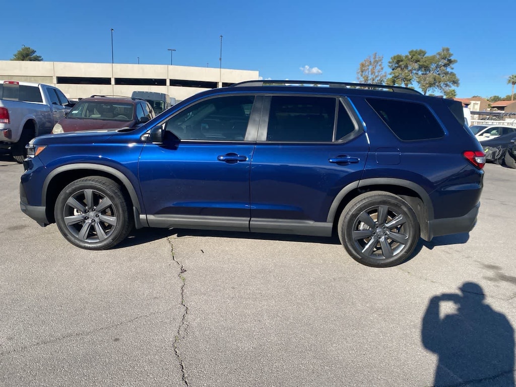 Strong and smart, our Accident Free 2025 Honda Pilot Sport checks the box for a bold Obsidian Blue Pearl design! Powered by a 3.5 Liter V6 supplying 285hp to a paddle-shifted 10 Speed Automatic transmission for confident towing capability. You can also choose from multiple performance modes in this Front Wheel Drive SUV, which achieves nearly 27mpg on the highway with a premium exterior design. Upscale Pilot features include LED lighting, fog lamps, gloss-black roof rails, dual chrome exhaust finishers, a rear roofline spoiler, and 20-inch alloy wheels.