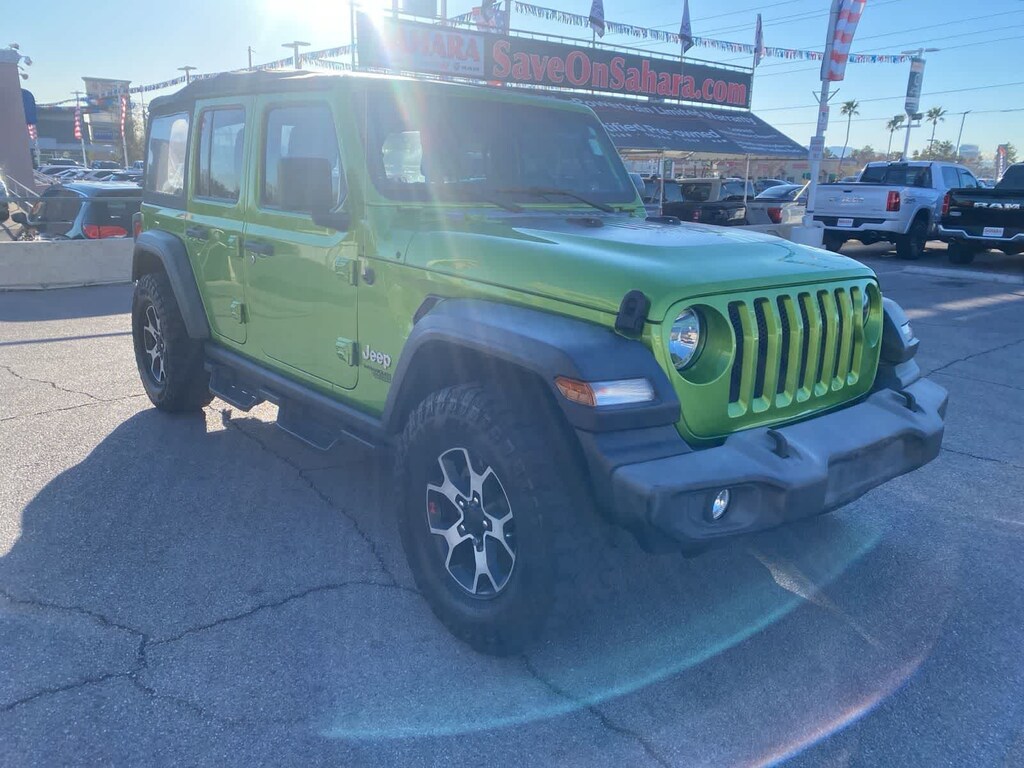 Whether youre blazing trails or bringing the kids to school, Jeep protects you with a backup camera, stability/traction control, front airbags, and hill start assist to help keep you out of harms way. Its time to reward yourself with our tremendously capable Wrangler Unlimited Sport! Save this Page and Call for Availability. We Know You Will Enjoy Your Lithia Sahara Chrysler Dodge Ram L0517 Test Drive Towards Ownership! Must finance with Chrysler Capital for all discounts to be applied.