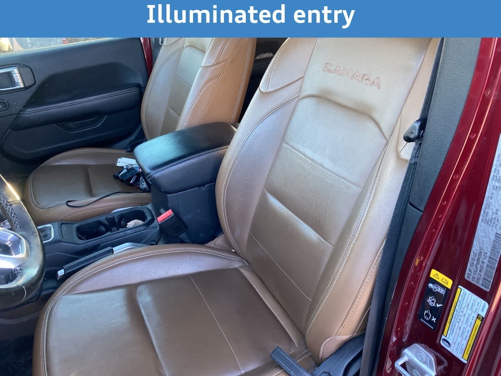 Climb up into our Sahara cabin that gets you ready for action with premium cloth seats, a multifunction steering wheel, power accessories, dual-zone automatic climate control, and other amenities designed to maximize your driving experience. Connect on the go with a 7-inch touchscreen, Apple CarPlayî/Android Autoî, and Bluetoothî, and kick out the jams with an eight-speaker sound system. Its time to pack up and push forward!