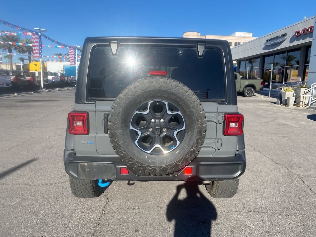 Our One Owner, Accident Free 2023 Jeep Wrangler 4xe Rubicon 4X4 can plug in for powering past the pavement in Sting-Gray! Motivated by a TurboCharged 2.0 Liter 4 Cylinder and 2 Electric Motors supplying a combined 375hp to an 8 Speed Automatic transmission. A high-performance plug-in hybrid, this Four Wheel Drive SUV blends authentic Rubicon capability, a gas-hybrid mode that returns nearly 20mpg combined, and an EV driving range of nearly 22 miles. Stunning Jeep style comes into view with LED lighting, fog lamps, hood vents, robust skid plates, blue tow hooks, 20-inch alloy wheels, protective rock rails, and a removable top and doors.