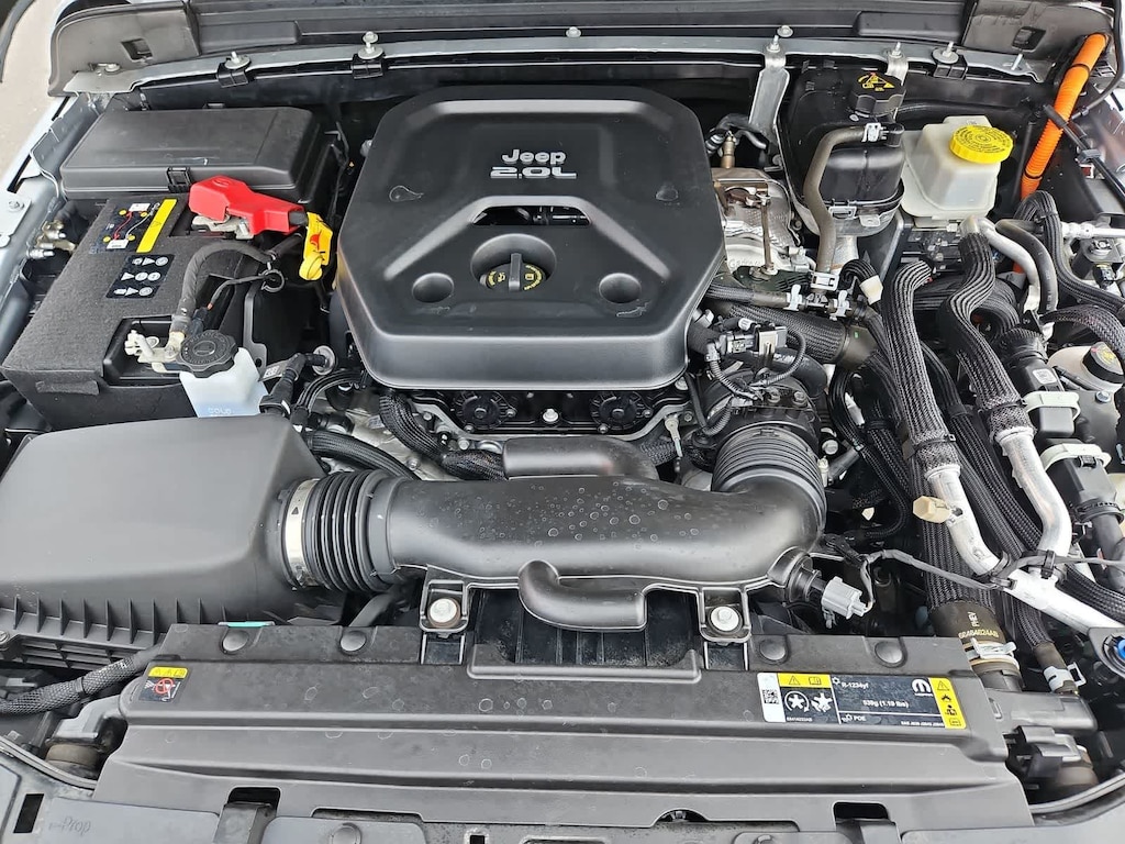 Tuned for the trail, our electrified One Owner, Accident Free 2023 Jeep Wrangler 4xe Sahara 4X4 with the Cold Weather Pack looks terrific in Silver Zynith! Motivated by a TurboCharged 2.0 Liter 4 Cylinder and 2 Electric Motors providing a combined 375hp to an 8 Speed Automatic transmission. The incredibly capable Four Wheel Drive SUV just about does it all with Dana axles, an EV range of nearly 22 miles, and a gas-hybrid mode that sees nearly 20mpg combined. Iconic Jeep styling gives our Wrangler 4xe a bold presence backed by exclusive Sahara graphics, LED lighting, fog lamps, blue tow hooks, 20-inch alloy wheels, full-body fender flares, side steps, rugged skid plates, and a removable top and doors.