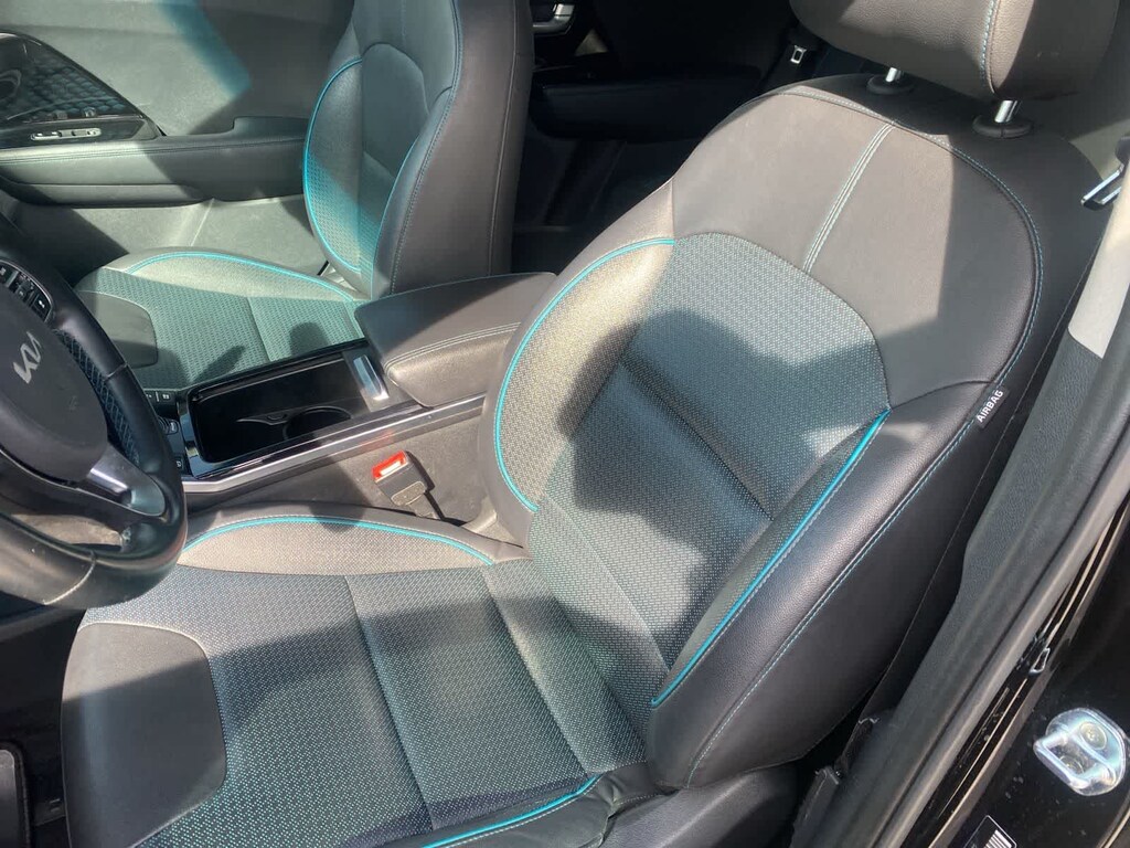 Our Aurora Black Pearl One Owner, Accident Free 2022 Kia Niro EV EX Premium lets you say goodbye to gasoline and hello to upscale adventures! Powered by an Electric Motor that generates 201hp matched to a Single Speed Automatic transmission for torque-friendly acceleration. Our Front Wheel Drive SUV is also agile and easy to maneuver, and with its 64kWh battery, it can travel nearly 239miles on a single charge of electricity at nearly 123mpge in the city. A typically impressive Kia design grabs your attention with LED lighting, fog lamps, alloy wheels, a power sunroof, and bold black fender moldings for rugged flair.