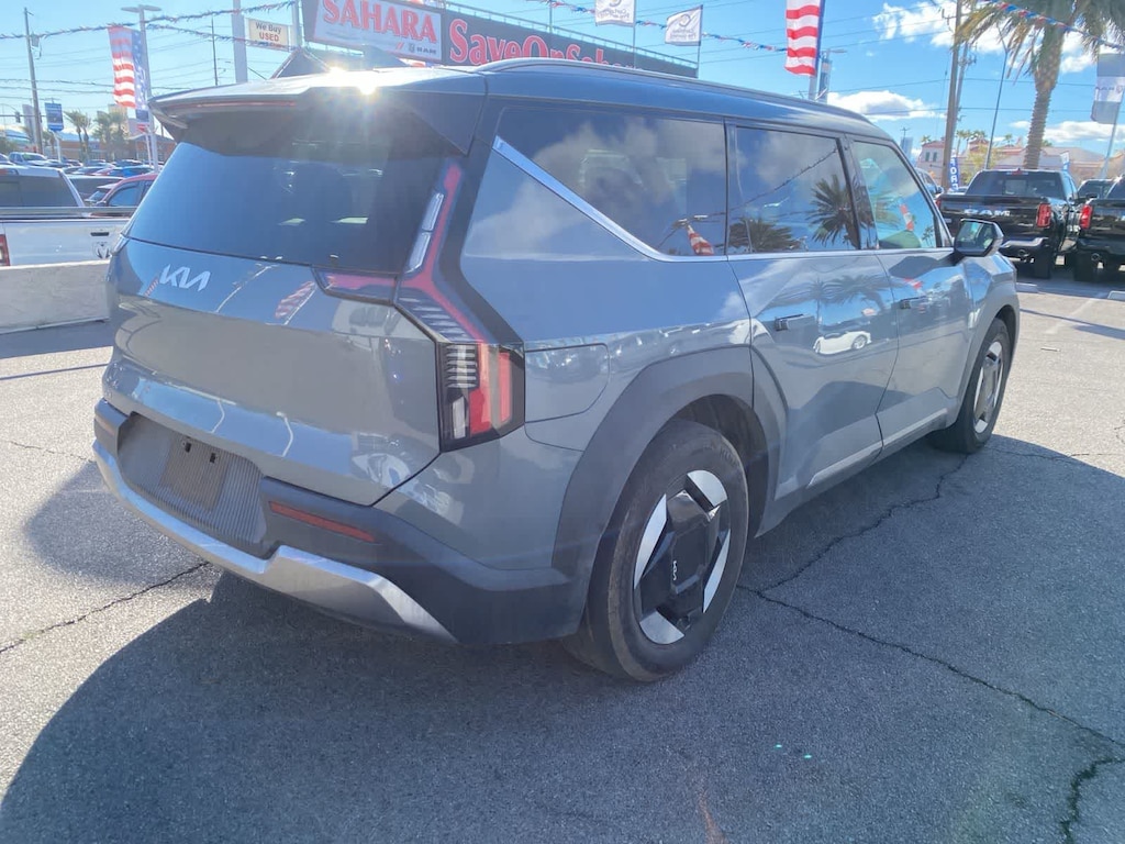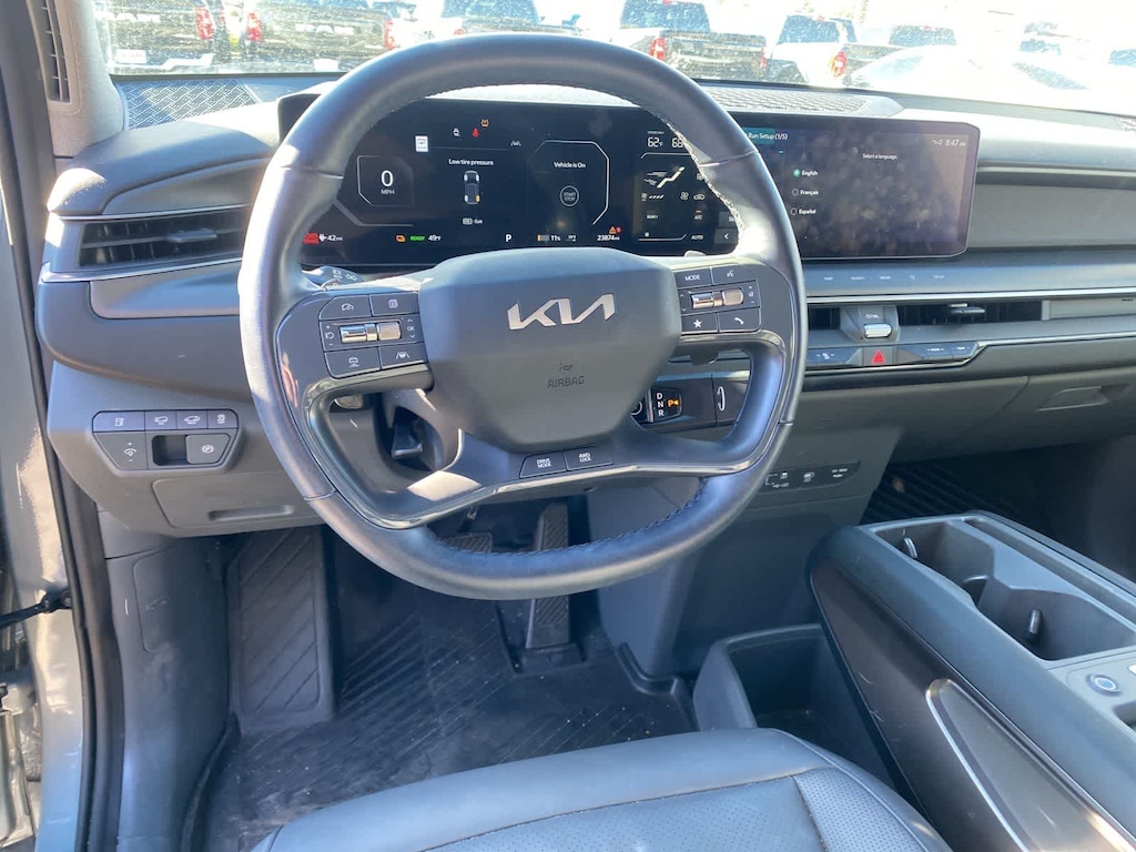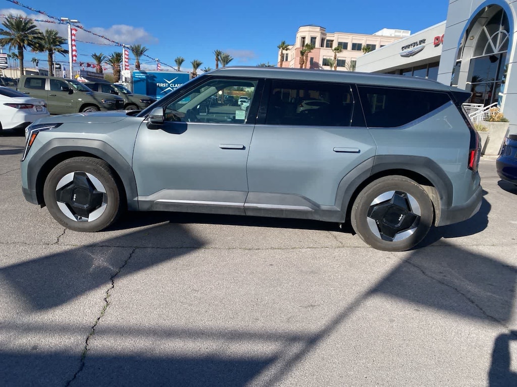 Our sophisticated One Owner, Accident Free 2024 Kia EV9 Wind in Ice Green makes electric driving a breeze! Motivated by Dual Electric Motors providing a combined 379hp to a Single Speed Automatic transmission for quick and capable performance. This All Wheel Drive SUV also boasts a 99.8kWh battery pack, enabling nearly 280 miles of range on a single charge. Charged-up styling is displayed with our EV9s dual sunroofs, hands-free liftgate, LED lighting, low-profile roof rails, auto-extending door handles, matte-black body cladding, and 19-inch black alloy wheels.
