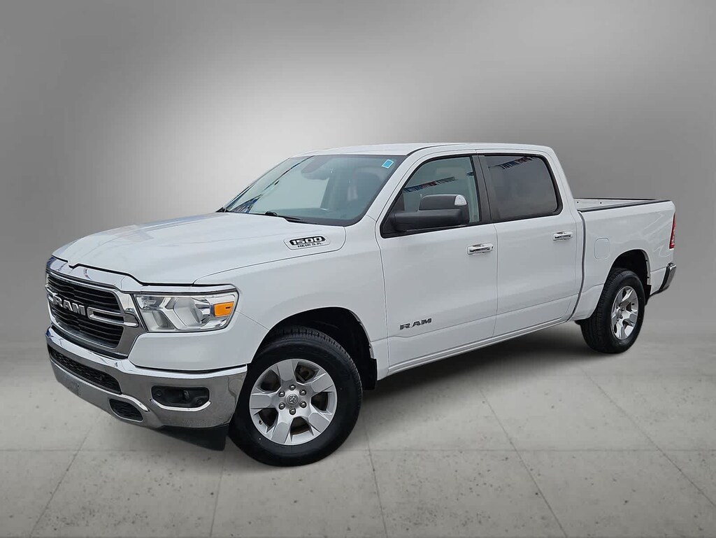 Step up to our 2019 RAM 1500 Big Horn/Lone Star Crew Cab 4X4 with the Level 1 Equipment Pack in Bright White, and get ready to go! Motivated by a 5.7 Liter HEMI V8 that offers 395hp paired with an 8 Speed Automatic transmission for high-capability pulling power. This Four Wheel Drive truck also provides a confidence-inspiring ride and the ability to see nearly 21mpg on the highway while grabbing your attention with style and strength. Check out the quad halogen headlights, fog lamps, alloy wheels, cargo-bed lighting, our Level 1 Pack for a Class IV hitch receiver, and heated power-folding mirrors with puddle lamps.