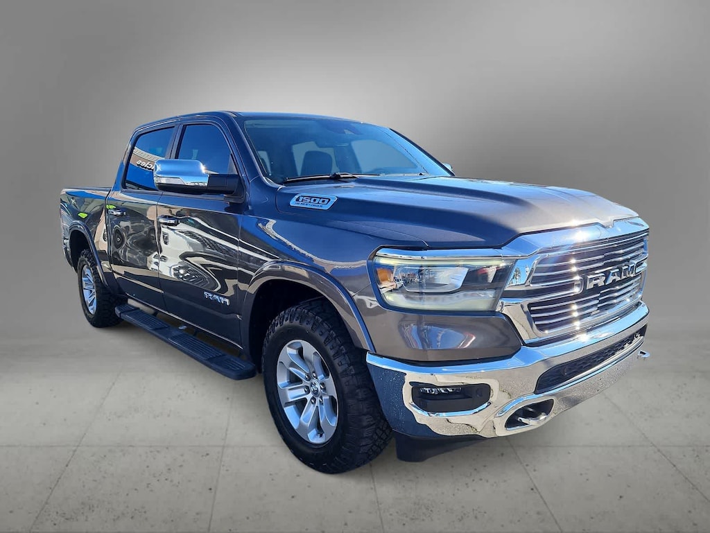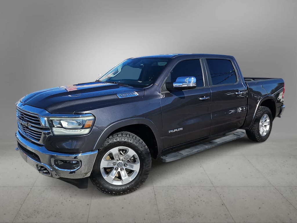 Raise the bar with our One Owner, Accident Free 2021 RAM 1500 Laramie Crew Cab 4X4 thats rugged and refined in Granite Crystal Metallic! Powered by a 5.7 Liter HEMI V8 serving up 395hp paired to an 8 Speed Automatic transmission for confident capability. Sure-footed and responsive, this Four Wheel Drive truck sees nearly 22mpg on the highway. Our RAM 1500s commanding presence is complemented by LED lighting, fog lamps, a chrome grille, alloy wheels, running boards, heated power-folding mirrors, and a damped/lockable tailgate.
