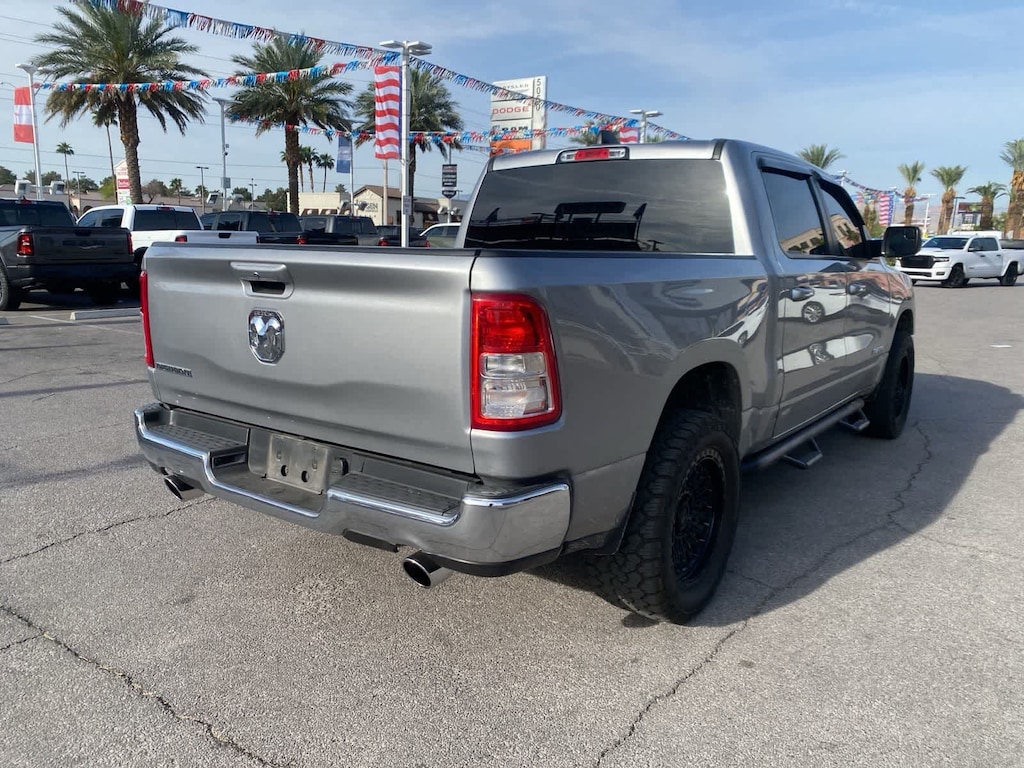 Our Accident Free 2022 RAM 1500 Big Horn/Lone Star Crew Cab 4X2 is as functional as it is stylish in Billet Silver Metallic! Powered by a 5.7 Liter HEMI V8 offering 395hp tethered to an 8 Speed Automatic transmission to meet your towing and hauling needs. This Rear Wheel Drive truck also boasts heavy-duty shocks to help you get more done with fewer hassles, and it returns nearly 23mpg on the highway. Rugged good looks raise the bar even higher for our RAM 1500, making a bold impression with quad halogen headlights, fog lamps, a chrome grille, bright bumpers, and alloy wheels. Step bars, a tow hitch receiver, and a spray-on bedliner have also been installed.