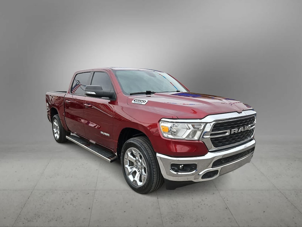 Our Accident Free 2022 RAM 1500 Big Horn/Lone Star Crew Cab 4X4 with the Level 2 Pack is as functional as it is stylish in Delmonico Red Pearl! Powered by a 3.6 Liter eTorque Pentastar V6 offering 305hp tethered to an 8 Speed Automatic transmission to meet your towing and hauling needs. This Four Wheel Drive truck also boasts heavy-duty shocks to help you get more done with fewer hassles, and it returns nearly 24mpg on the highway. Rugged good looks raise the bar even higher for our RAM 1500, making a bold impression with quad halogen headlights, fog lamps, a chrome grille, bright bumpers, alloy wheels, running boards, and our package for premium mirrors and a Class IV receiver hitch.