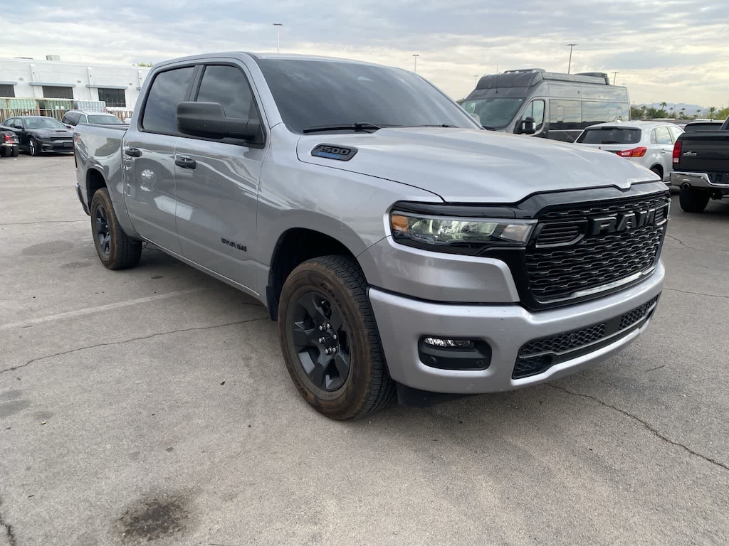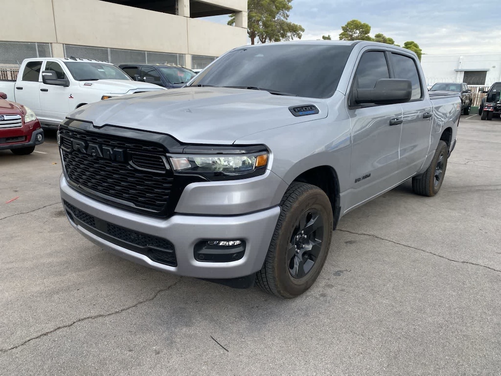 Get into our One Owner, Accident Free 2025 RAM 1500 Tradesman Crew Cab 4X4 with the Level 1 Equipment Package and get down to business in Billet Silver Metallic! Motivated by a 3.6 Liter eTorque V6 delivering 305hp matched to an 8 Speed Automatic transmission, so youre well-prepared for pulling. This Four Wheel Drive truck also rides on a robust suspension to handle hard work, and it returns nearly 24mpg on the highway. Come see this one in person to check out its LED lighting, including an LED tailgate-handle hitch light, heated power mirrors, a bold grille, black bumpers, and matching trim.