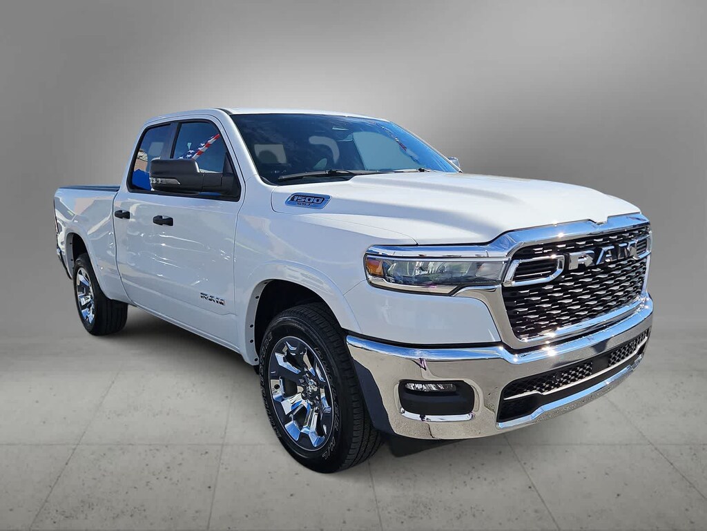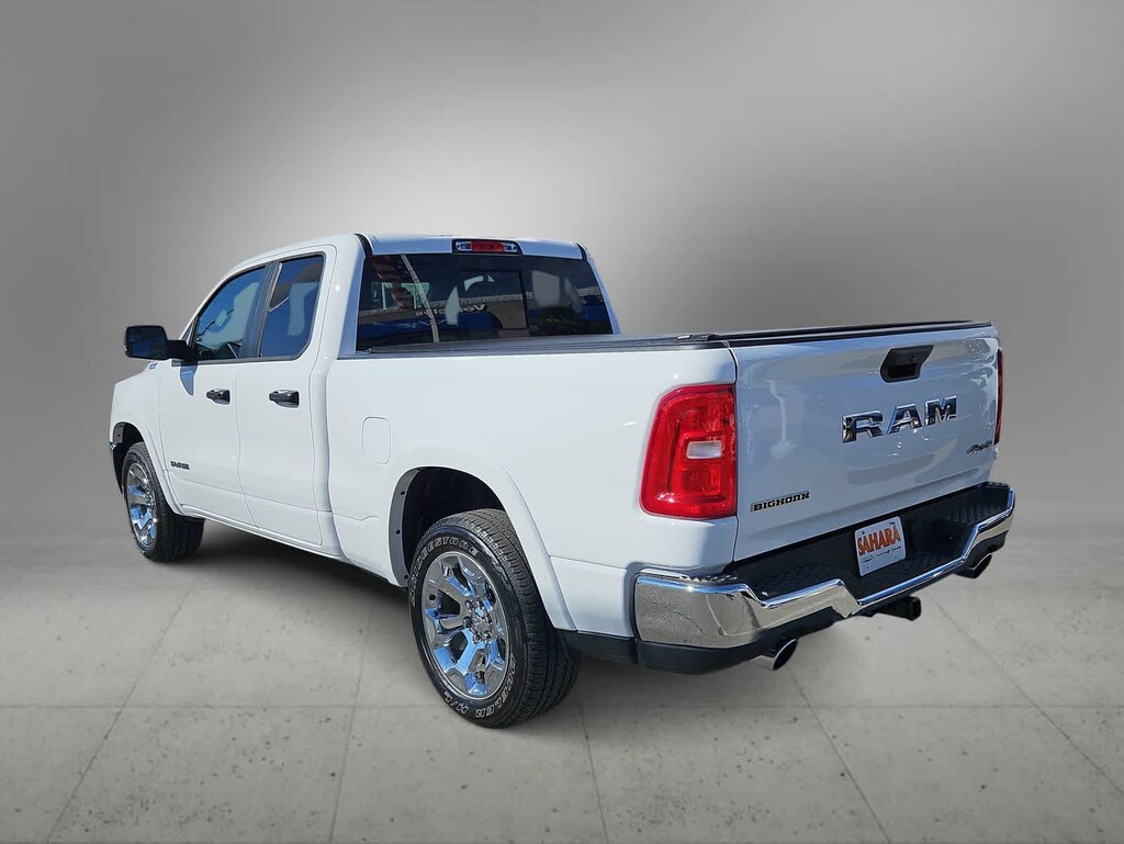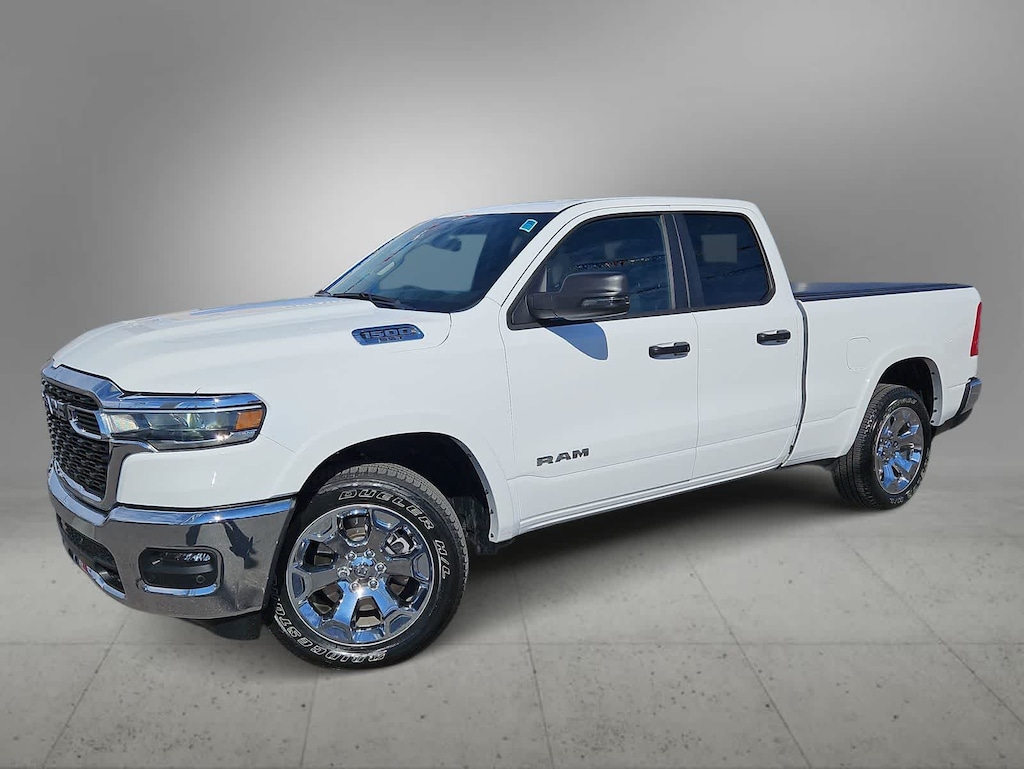 Tough and powerful, our One Owner, Accident Free 2025 RAM 1500 Big Horn Quad Cab 4X4 with the Level 2 Pack is built for bold challenges in Bright White! Motivated by a Twin-TurboCharged 3.0 Liter Hurricane 6 Cylinder supplying 420hp to an 8 Speed Automatic transmission for robust real-world towing and hauling. Responsive handling inspires confidence in this Four Wheel Drive truck, which scores nearly 24mpg on the highway. Our RAM also rides with dynamic details like LED lighting, fog lamps, a Class IV receiver hitch, bold fender flares, alloy wheels, and a mighty RAM grille. Level 2 upgrades include multifunction mirrors and bed-mounted outlets powered by a 400W inverter.