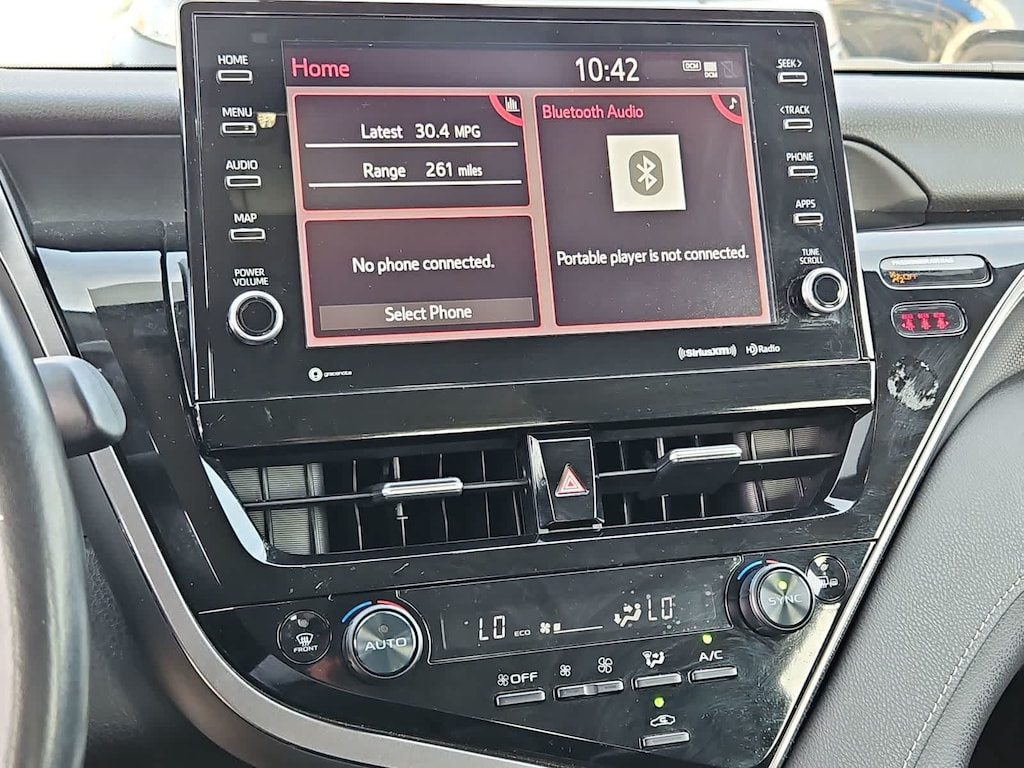Our One Owner, Accident Free 2023 Toyota Camry XSE Sedan in Predawn Gray Mica can add a dash of flair to your daily driving! Motivated by a 2.5 Liter Dynamic Force 4 Cylinder that provides 203hp connected to a paddle-shifted 8 Speed Automatic transmission to put athletic performance at your fingertips. This Front Wheel Drive sedan also cuts through the curves with a sport-tuned suspension, and it sees nearly 38mpg on the highway. Our Camrys revved-up good looks get a boost from LED lighting with signature accent lights, a gloss-black grille, sport-style rocker panels, gloss-black alloy wheels, quad-tipped dual exhaust, and a rear spoiler.